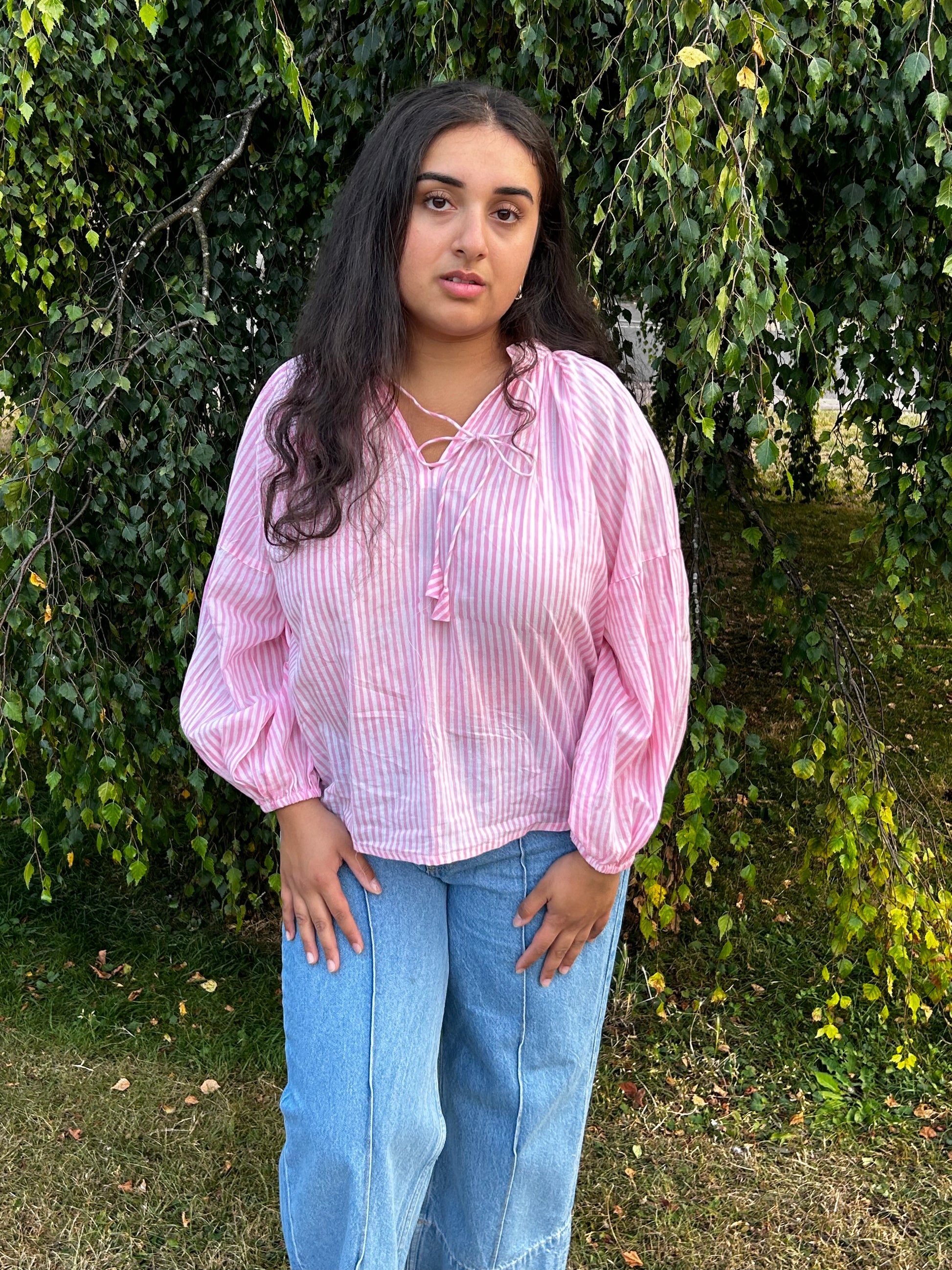 - V-neck with tie string