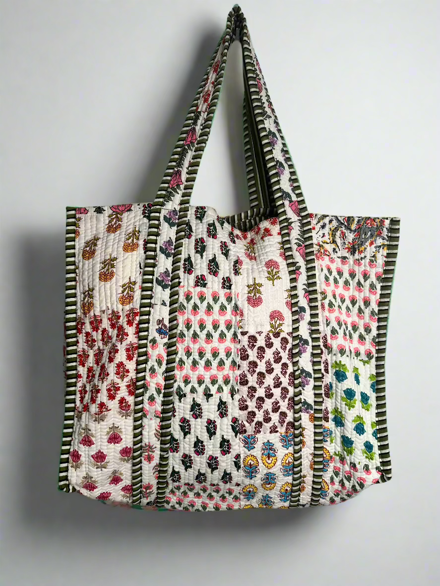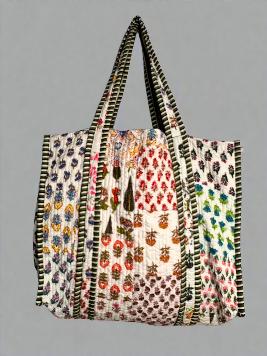 White Multi colour Quilted Tote Bag