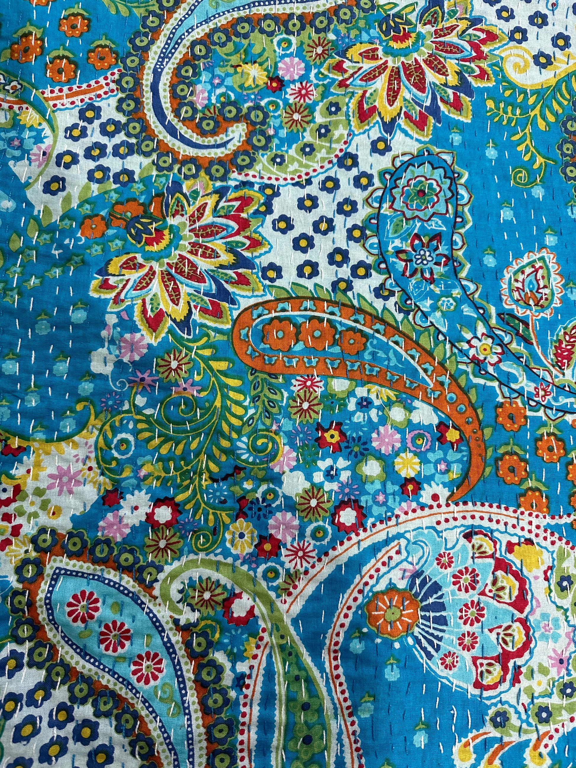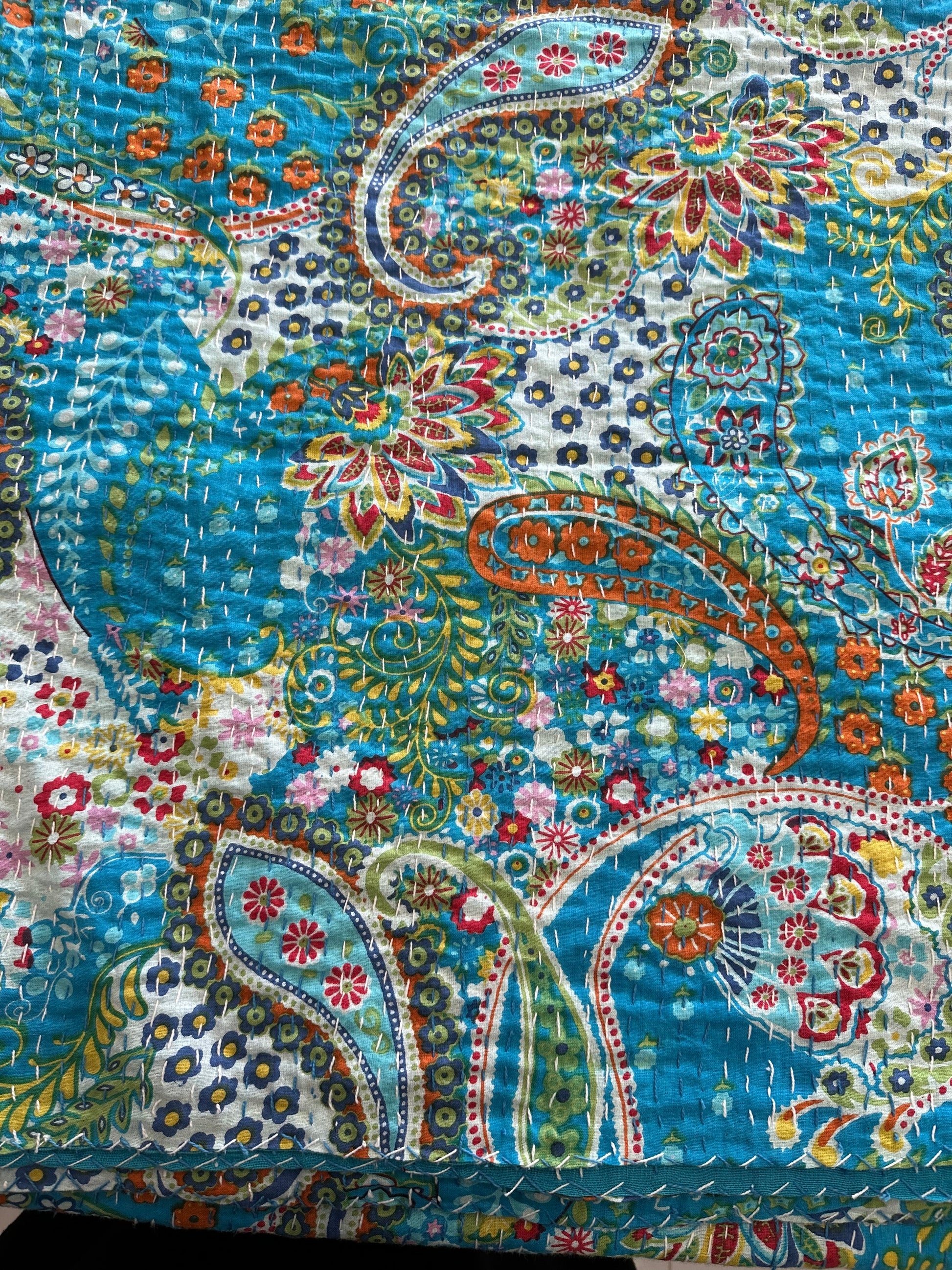 - Traditional Exquisite Kantha Embroidery Stitches across the length of the throw