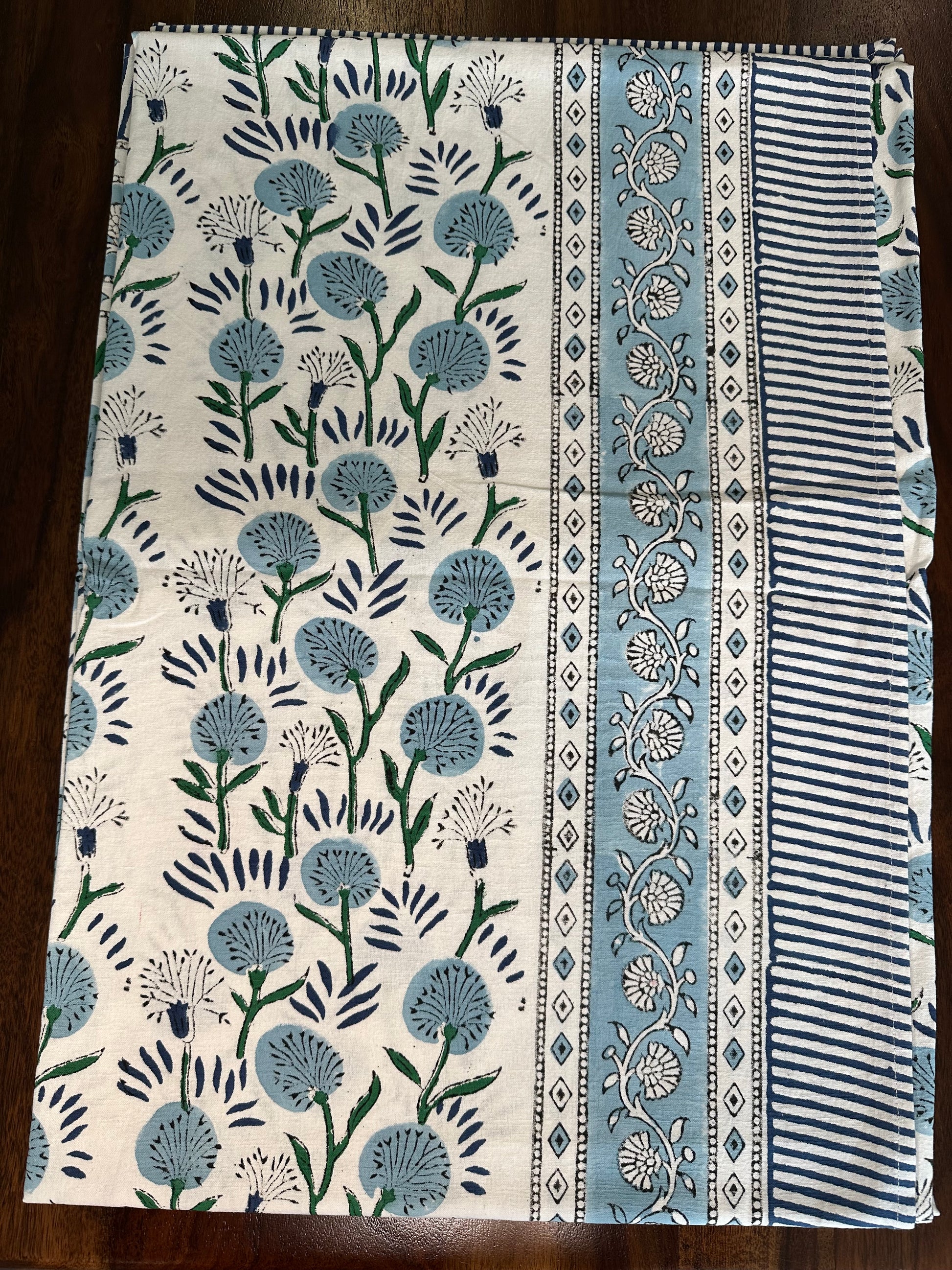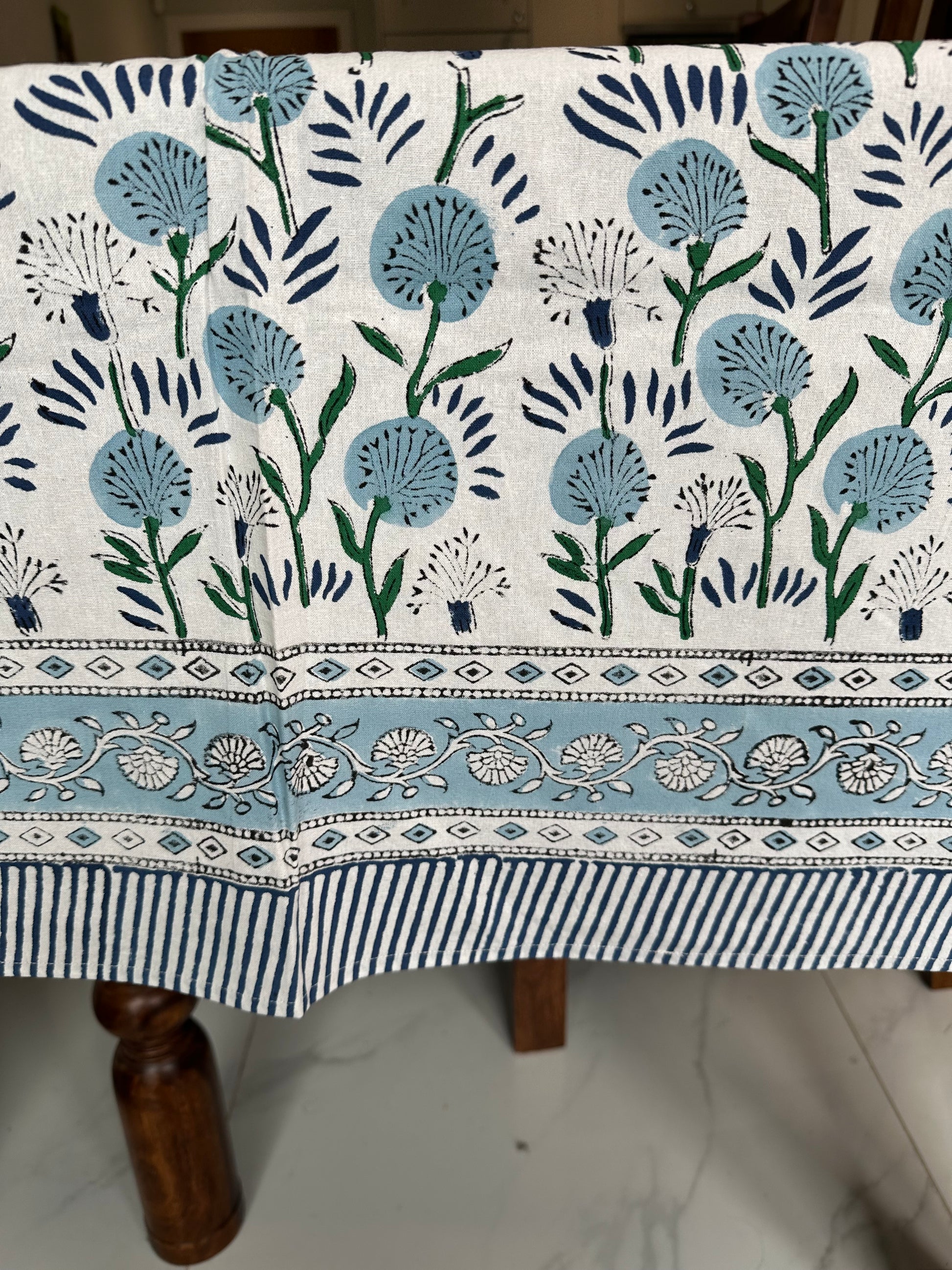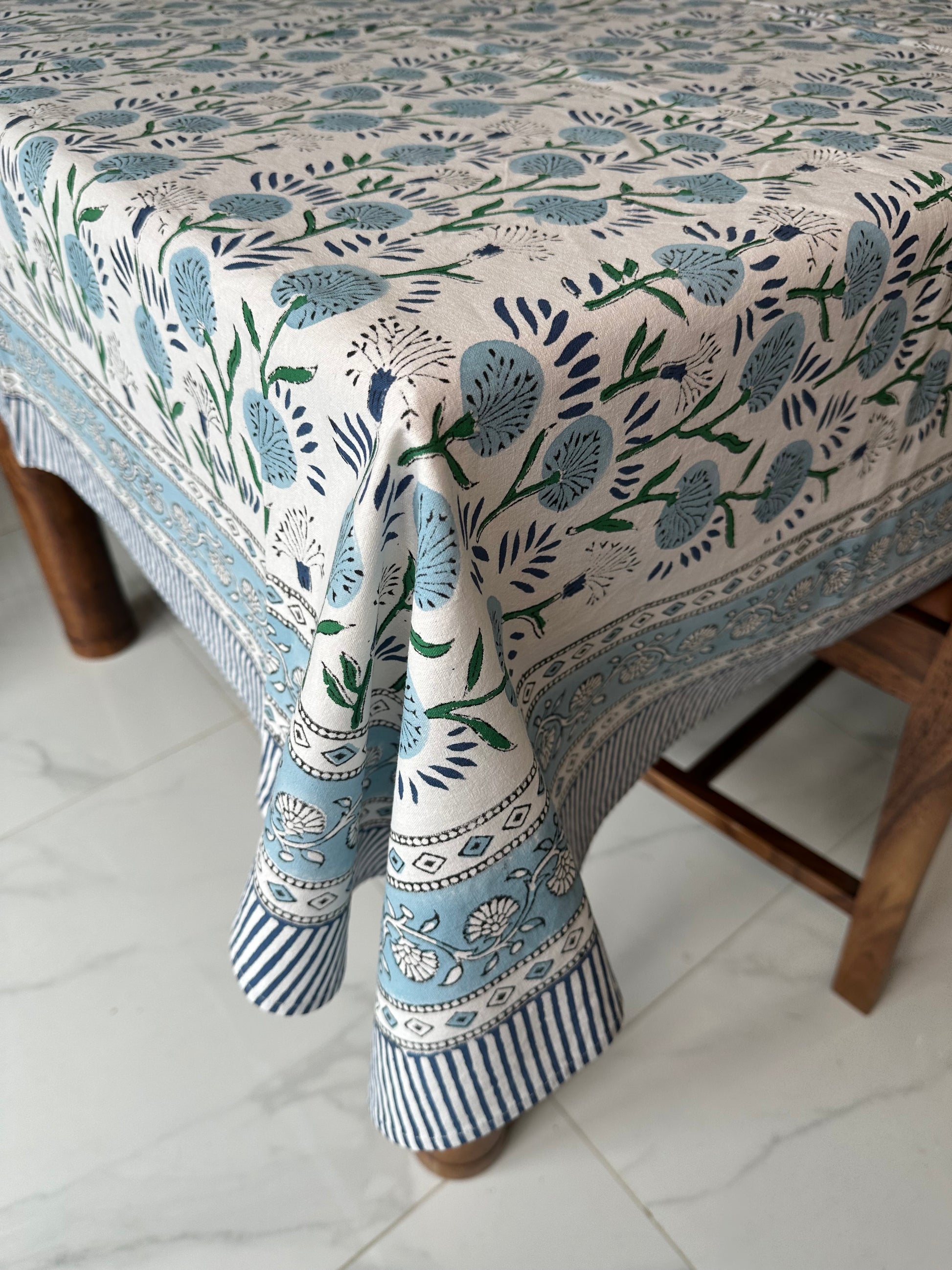 Azure Meadow Block Printed Tablecloth