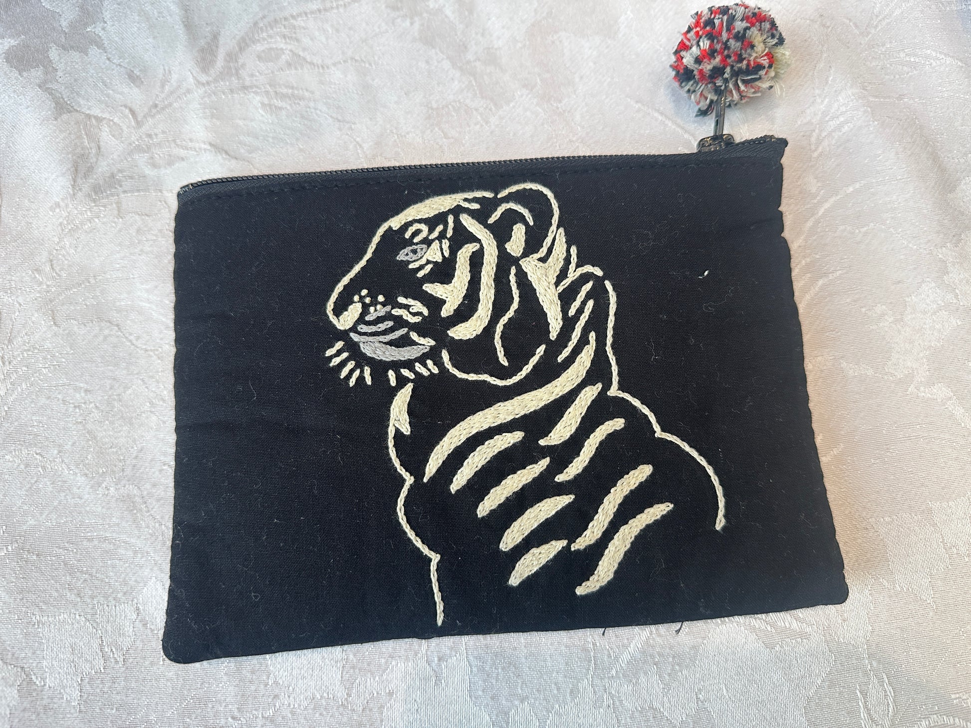 Embroidered Tiger pattern purse with another zipper pocket inside perfect to keep your essentials like keys, jewellery, coins etc.