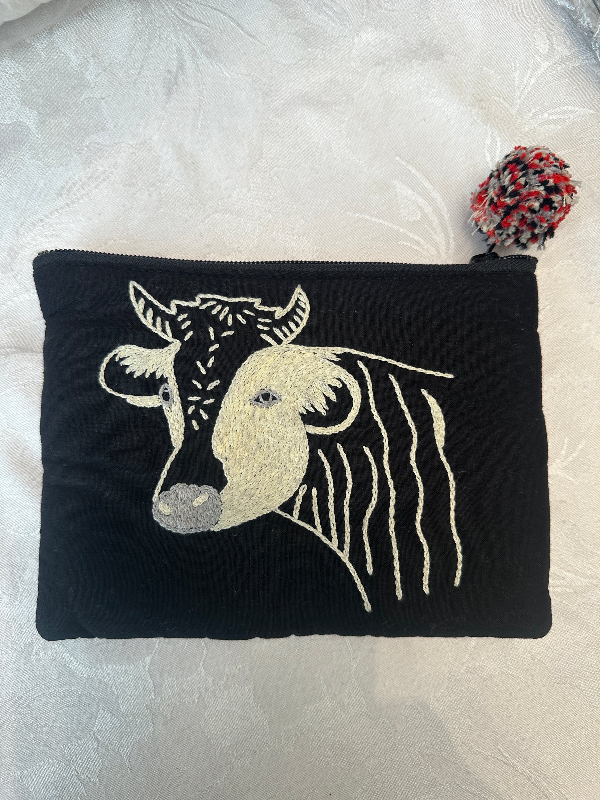 Embroidered Bull pattern purse with another zipper pocket inside perfect to keep your essentials like keys, jewellery, coins etc.