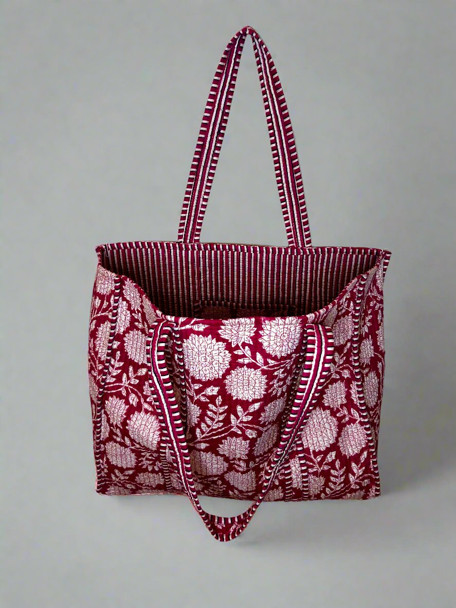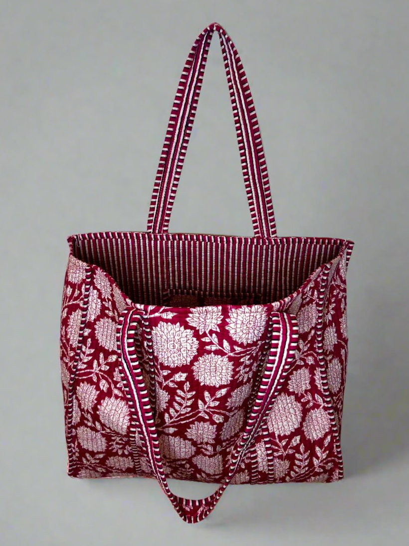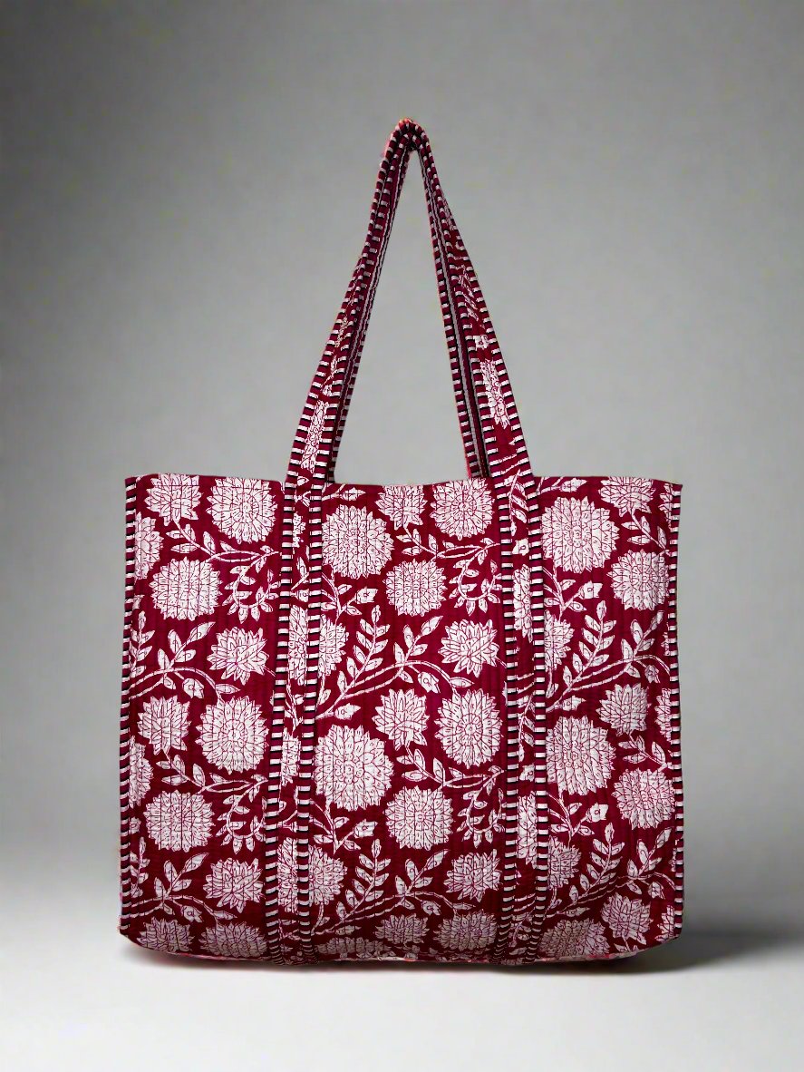 Crimson Blossom Quilted Tote Bag