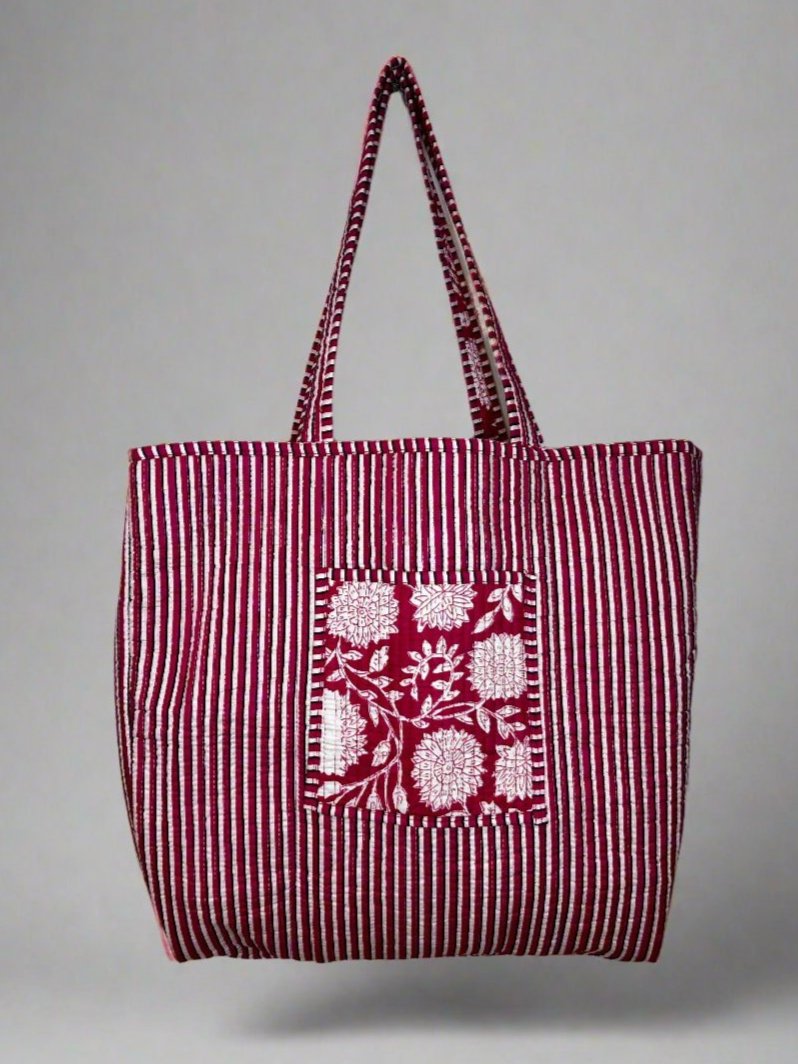 Travel sustainably in style with our one-of-a-kind handmade quilted tote bags, carefully crafted using unique patchwork designs that reuse cotton fabric scraps where possible, reducing waste. Note the reversible design and large size, making this bag not only versatile but also stylish and multi-use. The pocket can feature either on the outside or inside of the bag depending on which pattern you wish to show off!