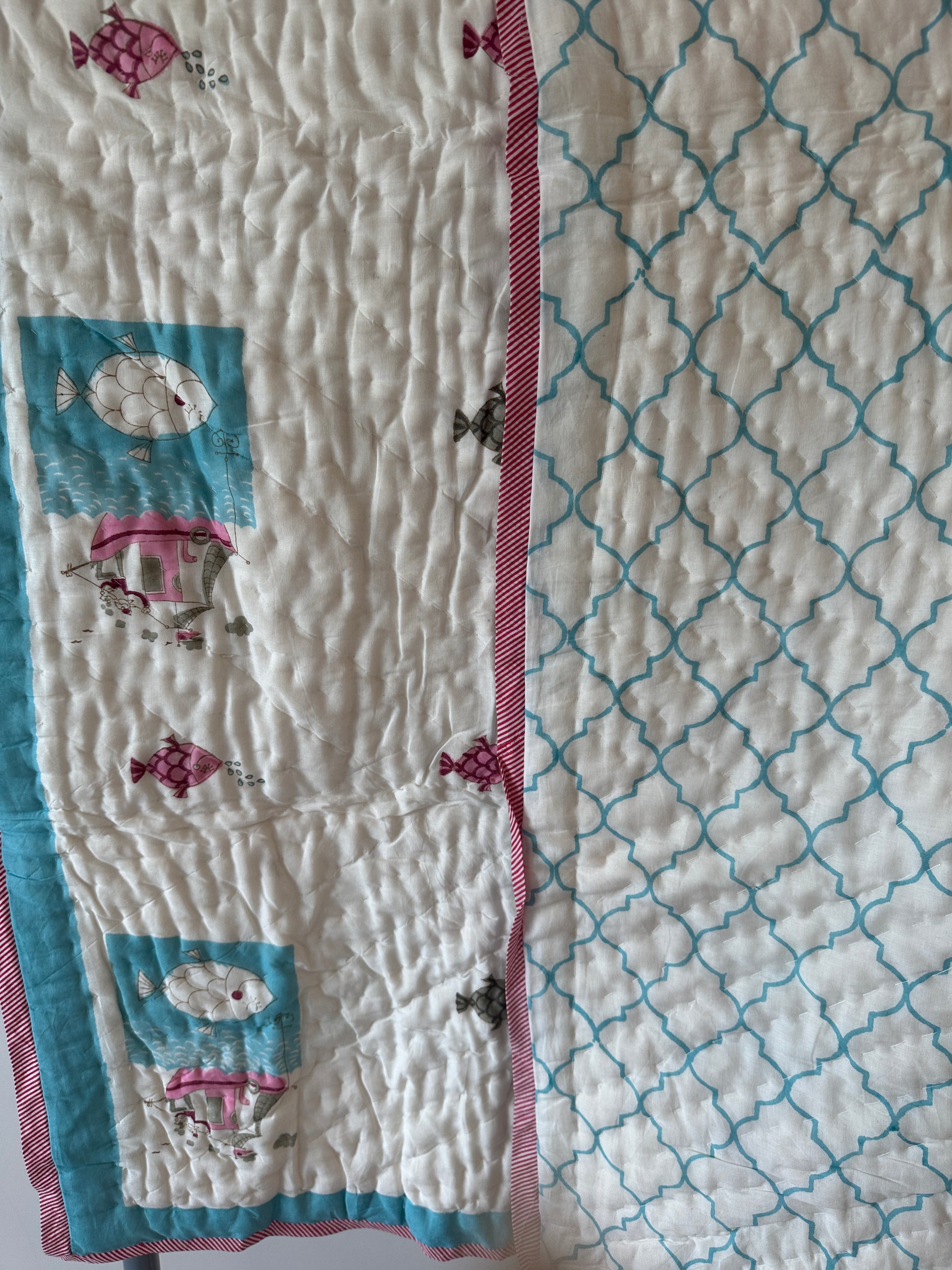 Fish - Hand Block Printed Reversible Kid's Quilt