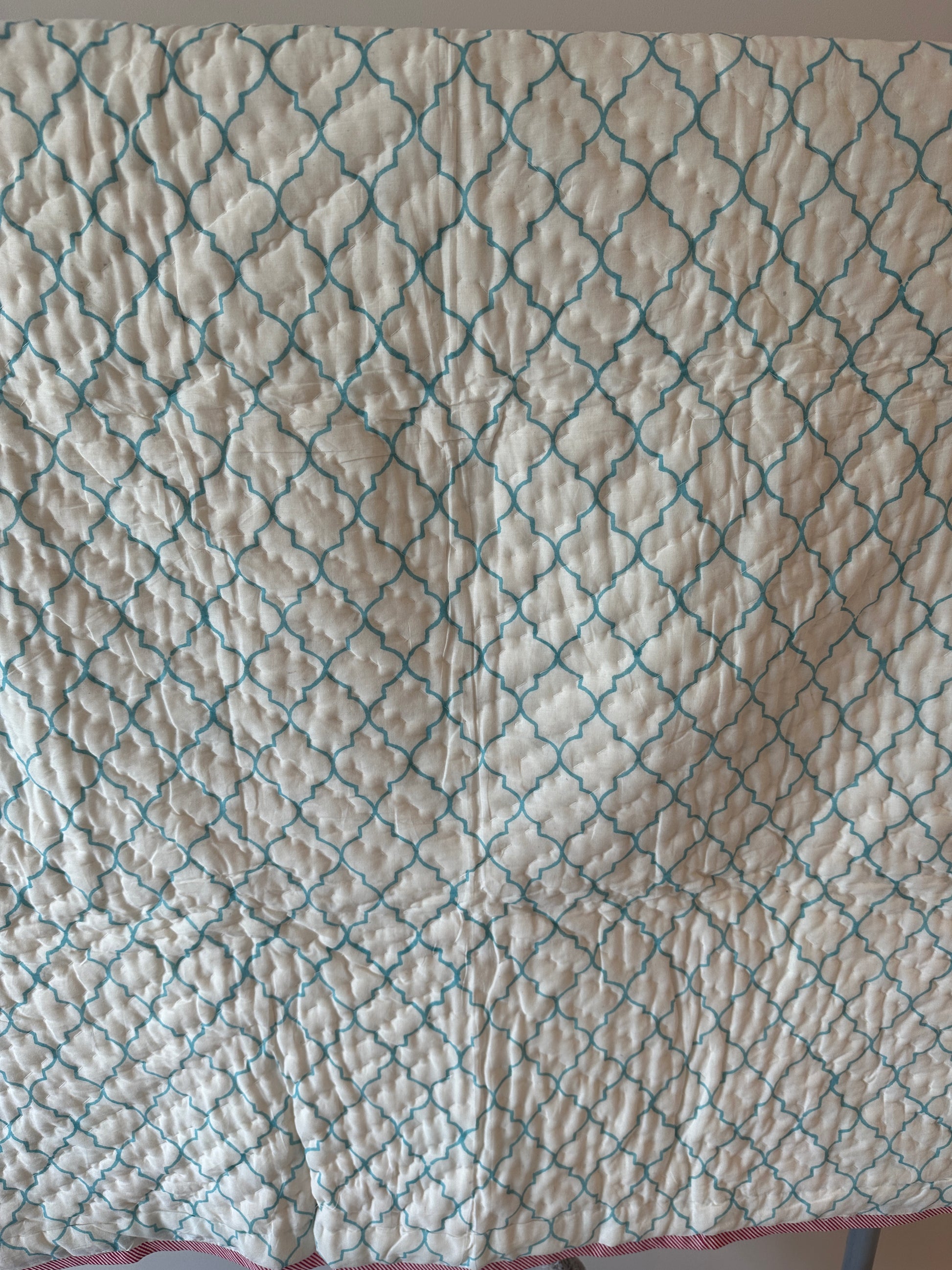 Reversible hand block printed cotton kids quilt made using plant based natural dyes