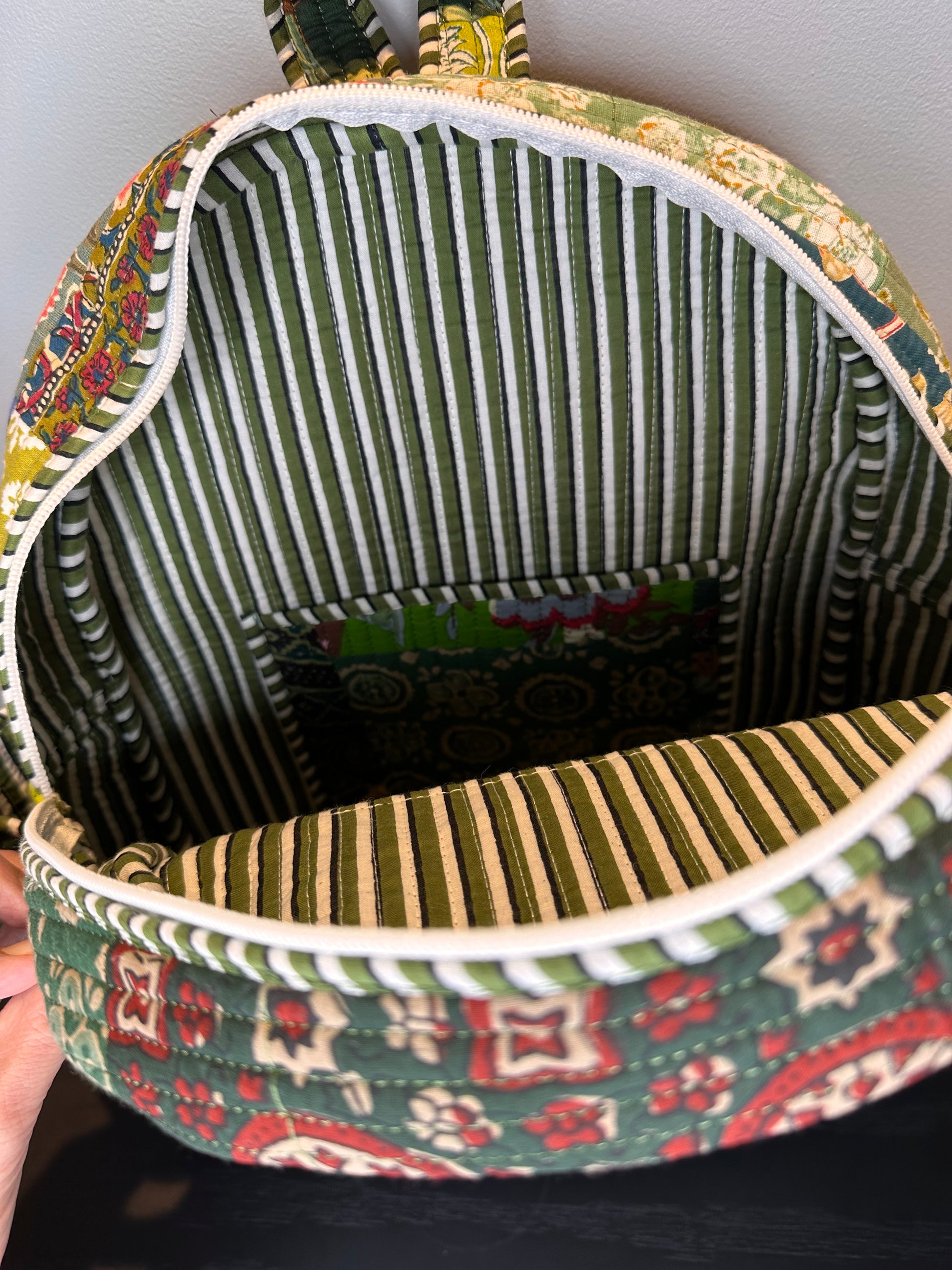 Prefer backpacks over shoulder bags? Travel sustainably in style with our one-of-a-kind handmade quilted backpacks, carefully crafted using unique patchwork designs that reuse cotton fabric scraps where possible, reducing waste. These backpacks feature a front, side and inside pockets, making this bag not only stylish but also versatile.