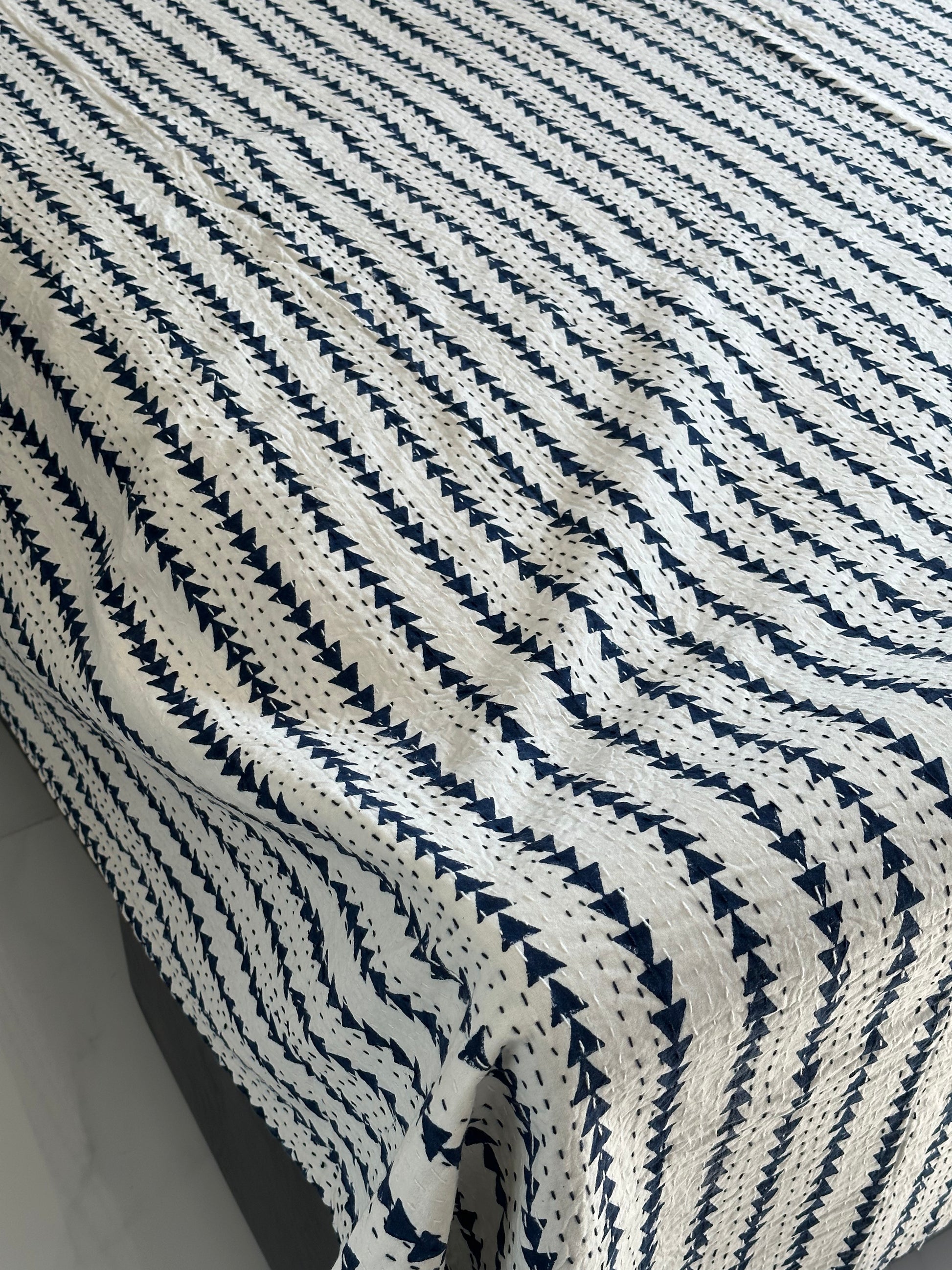 - Traditional Exquisite Katha Embroidery Stiches across the length of the throw