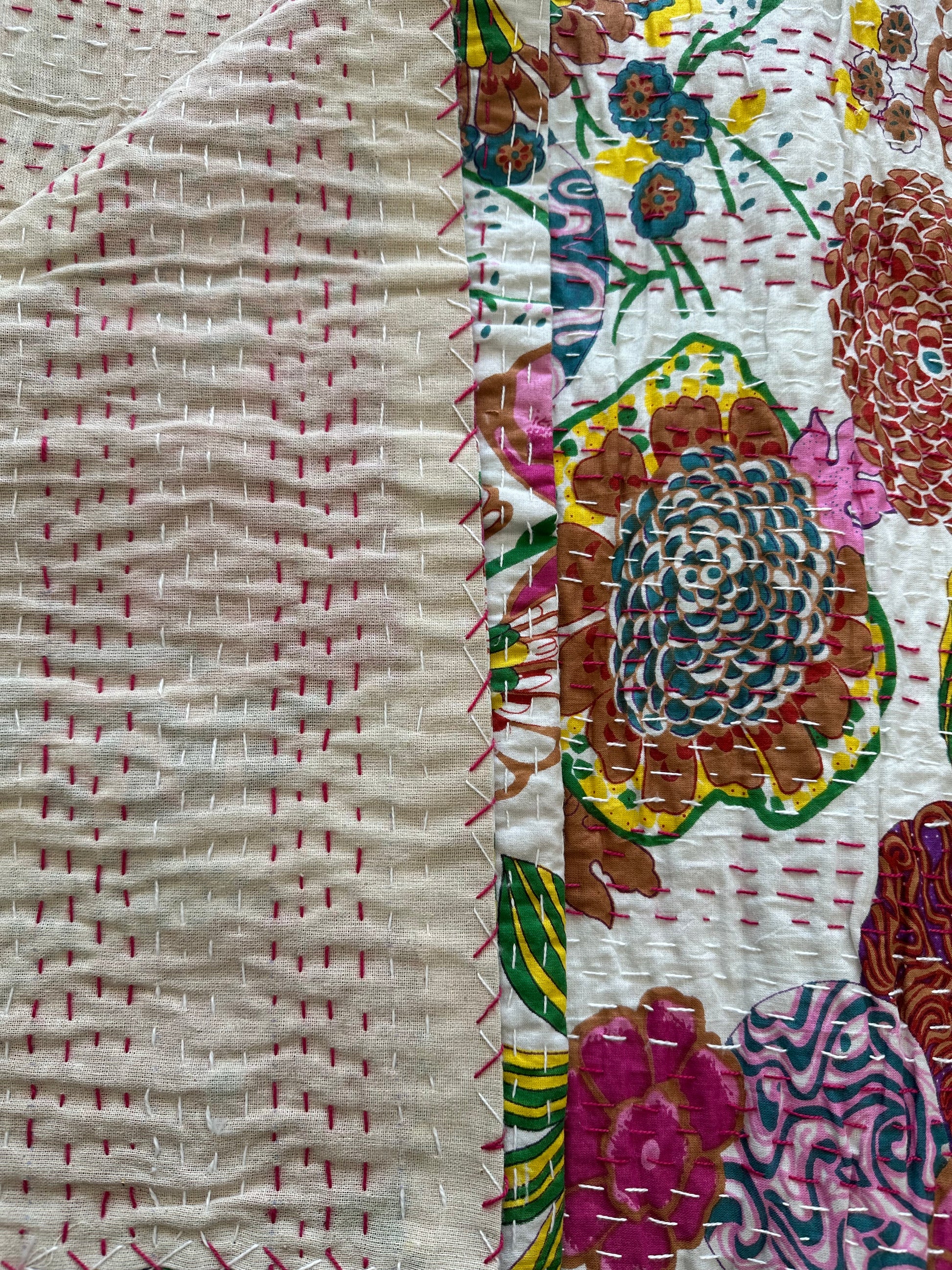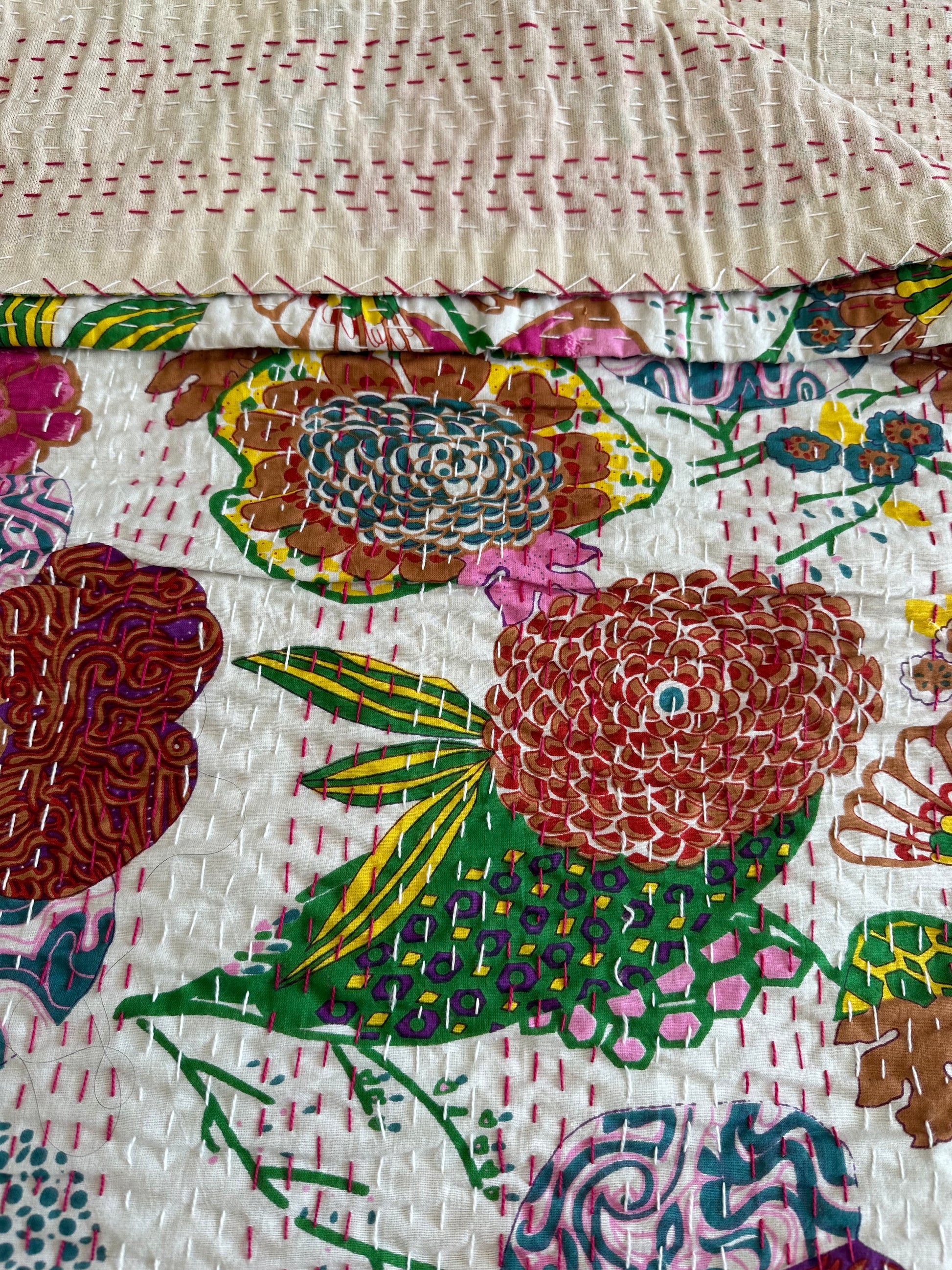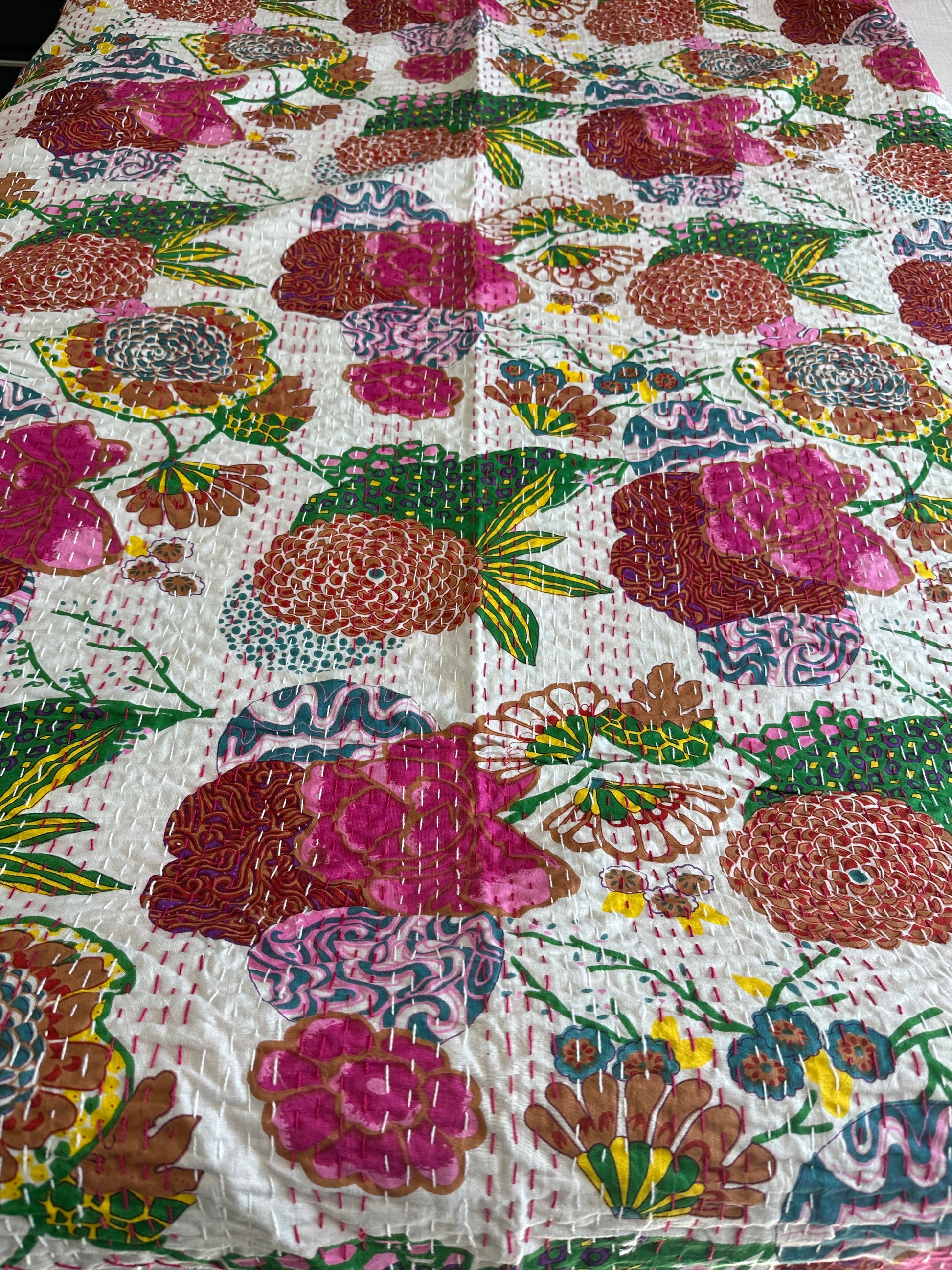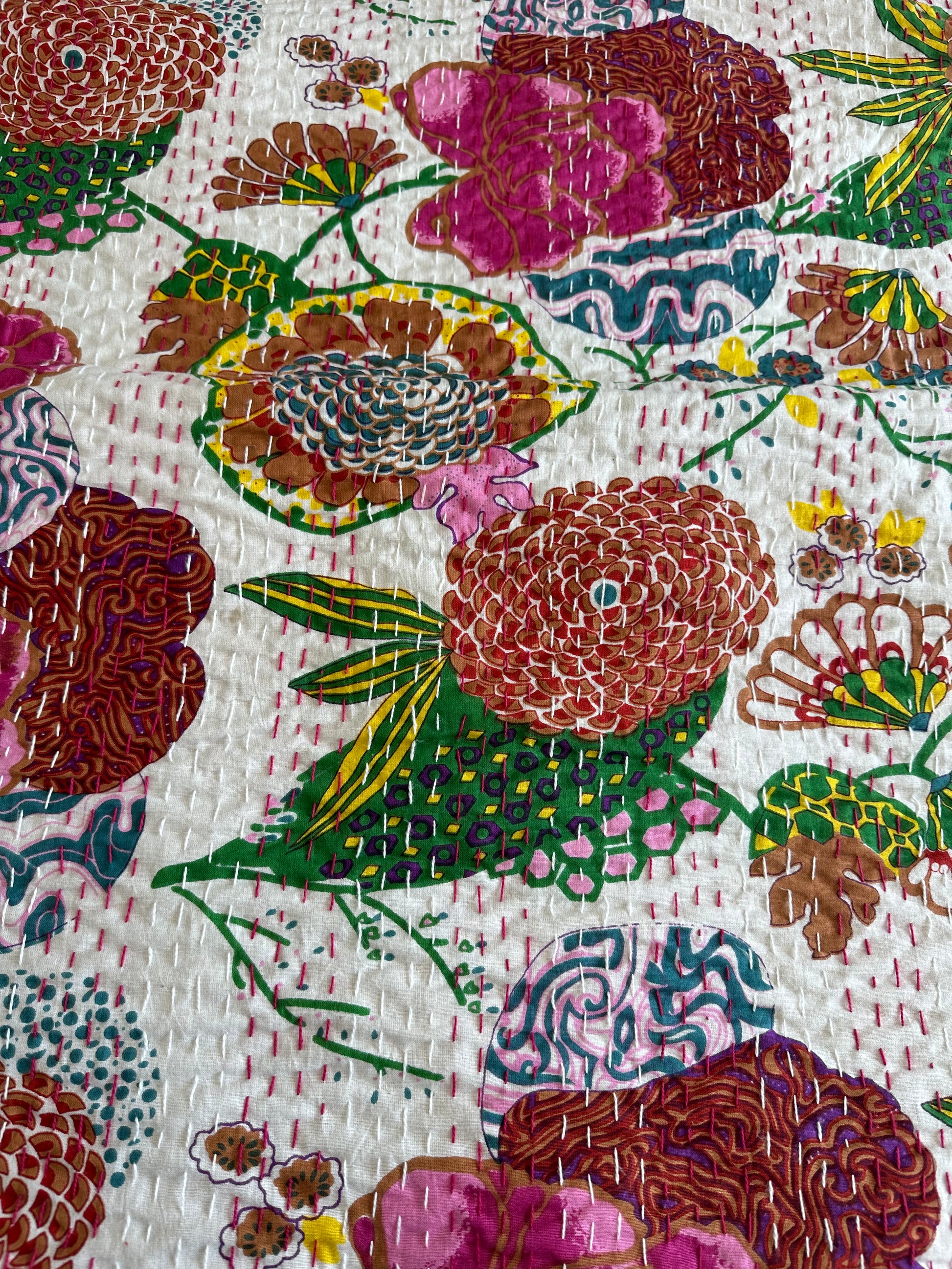 - Traditional Exquisite Kantha Embroidery Stitches across the length of the throw