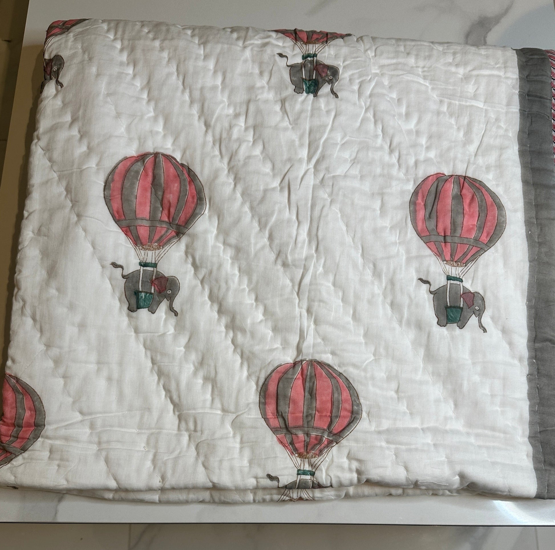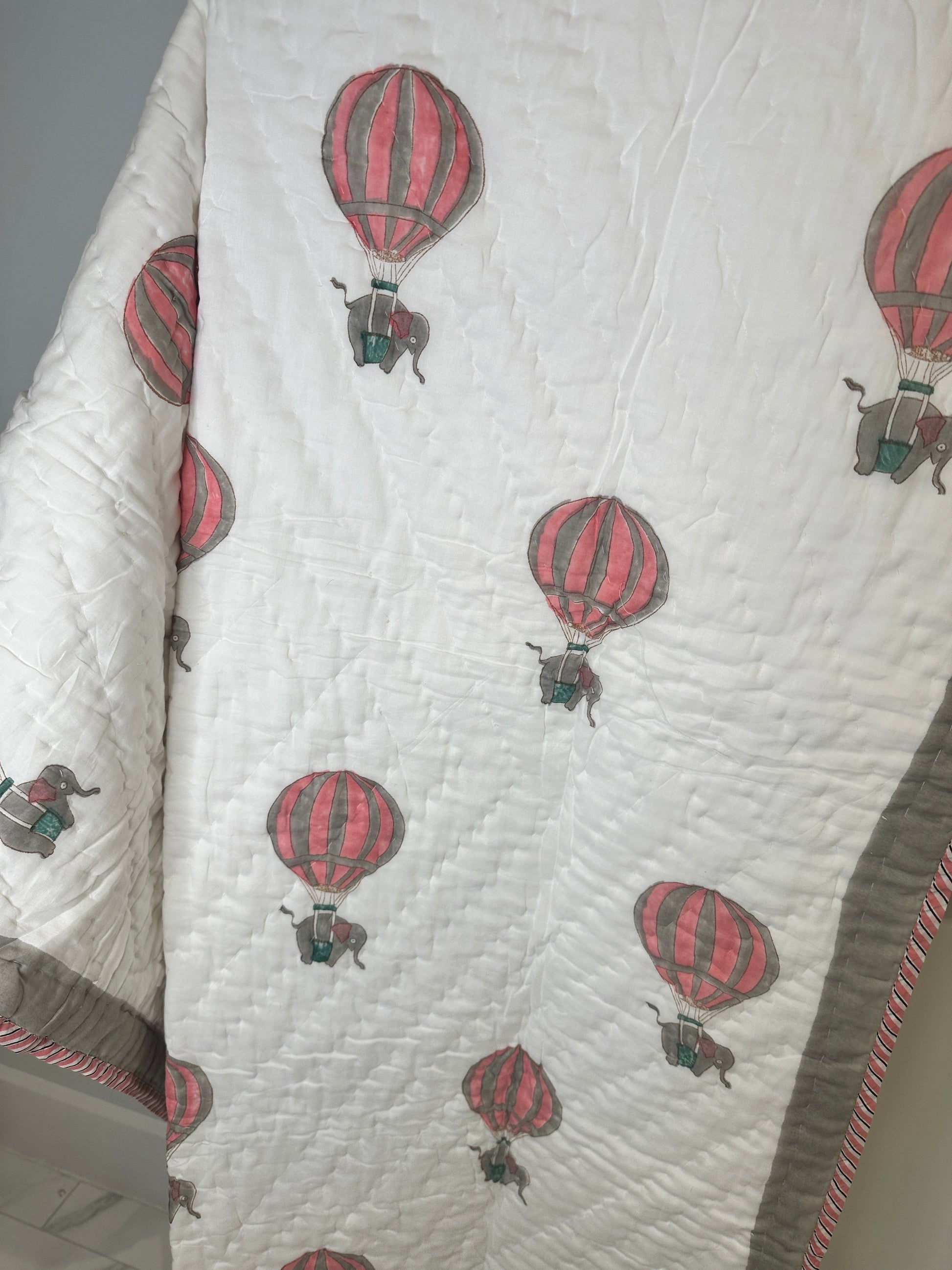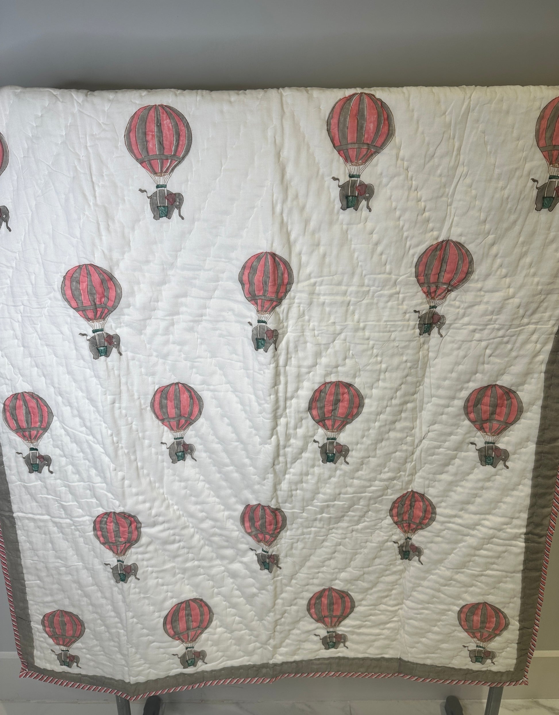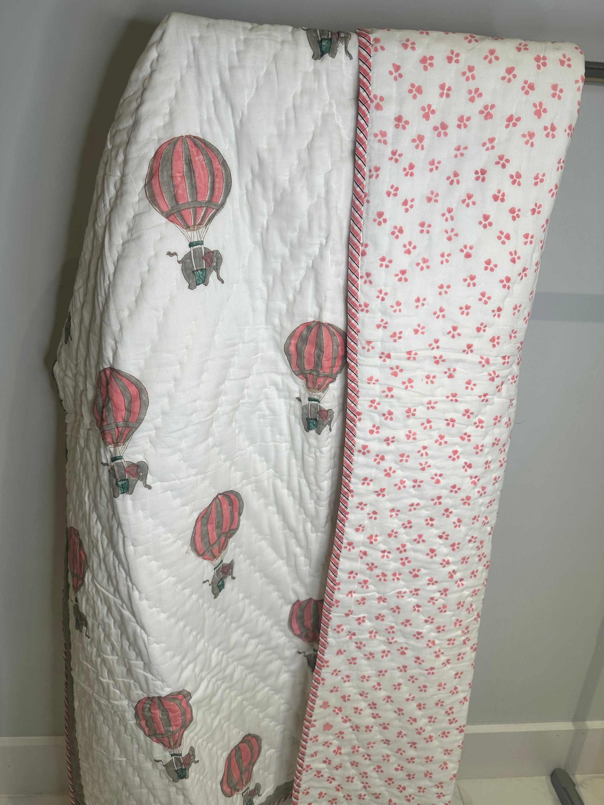 Hot Air Balloon - Hand Block Printed Reversible Kid's Quilt