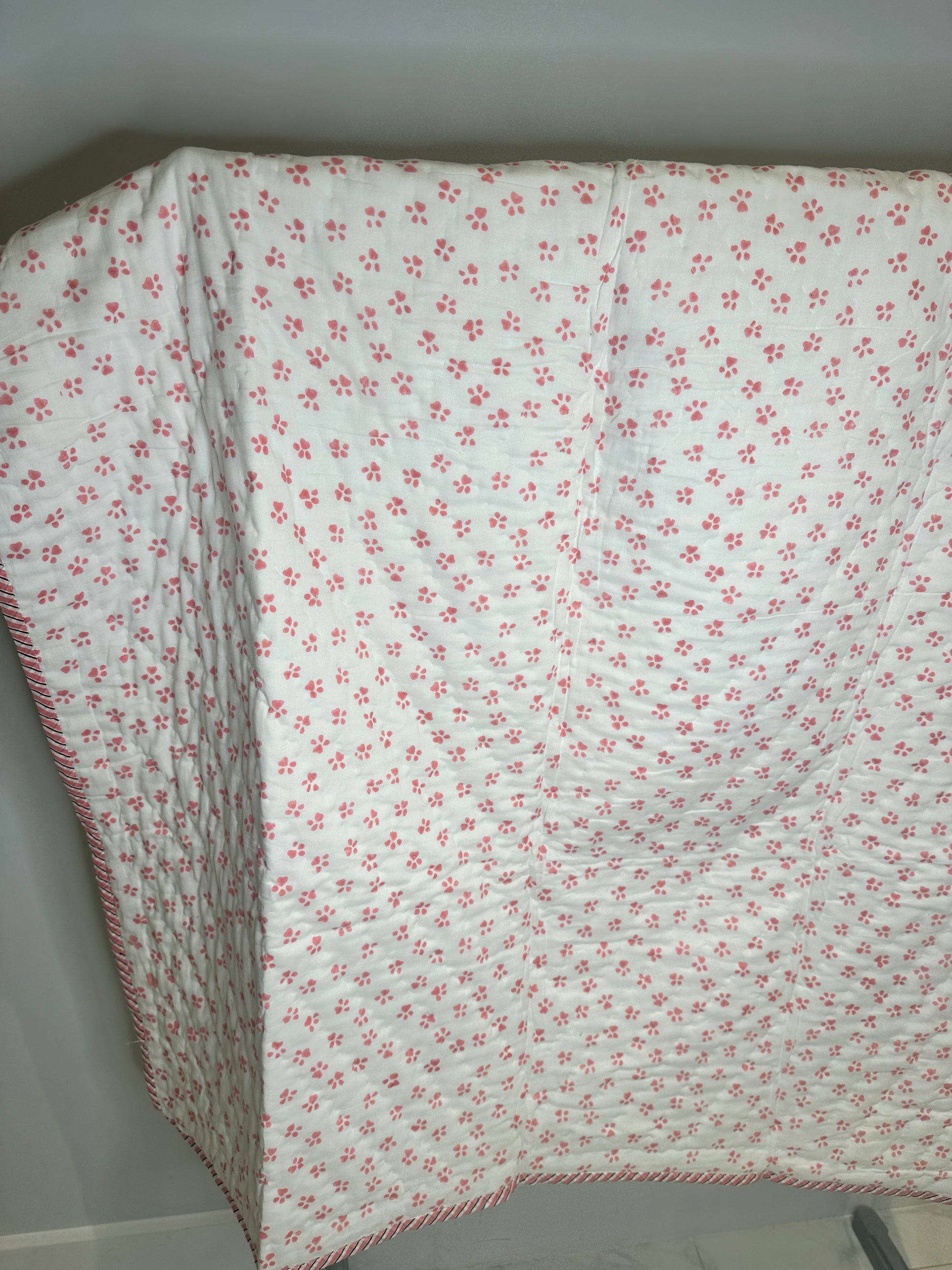 Reversible hand block printed cotton kids quilt made using plant based natural dyes