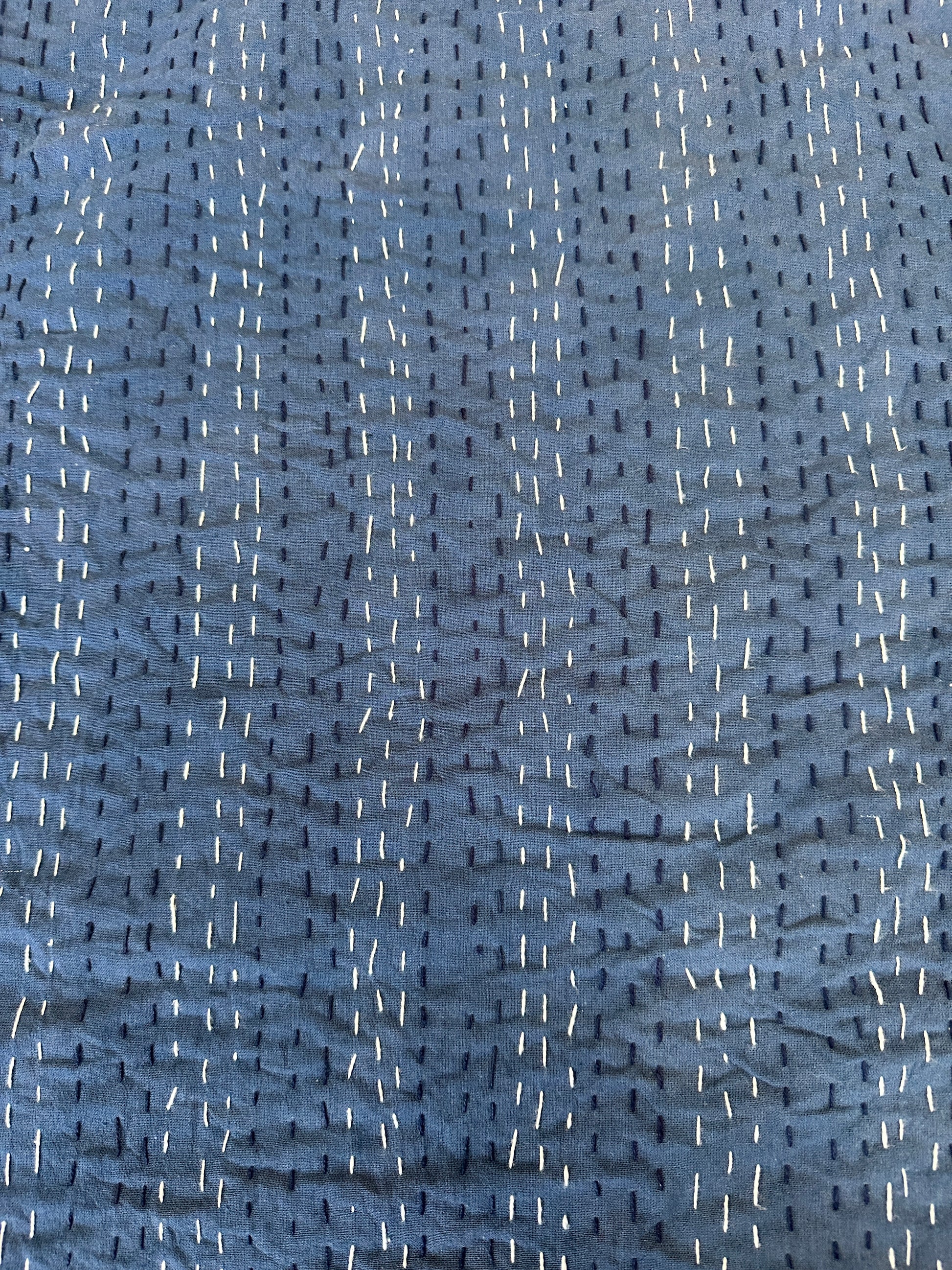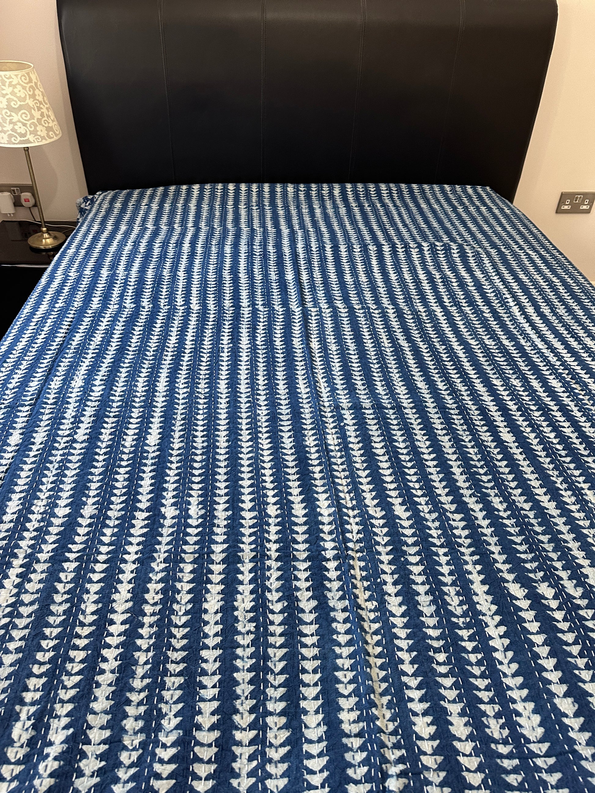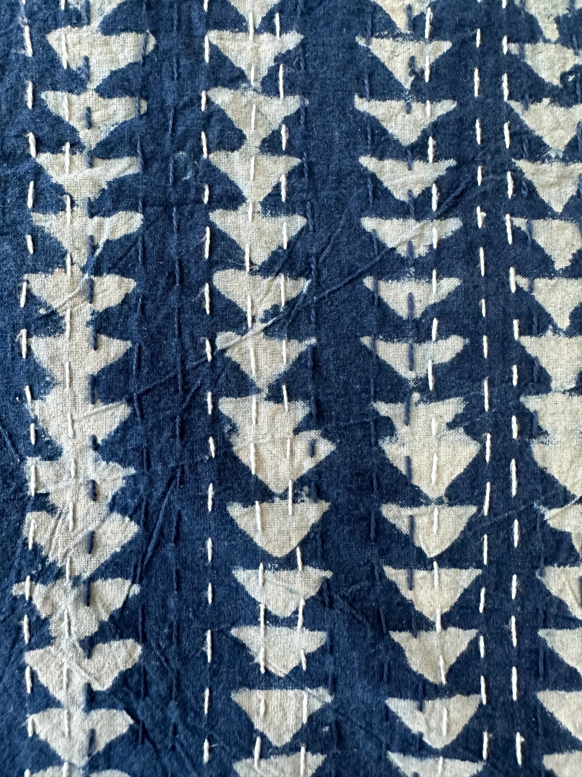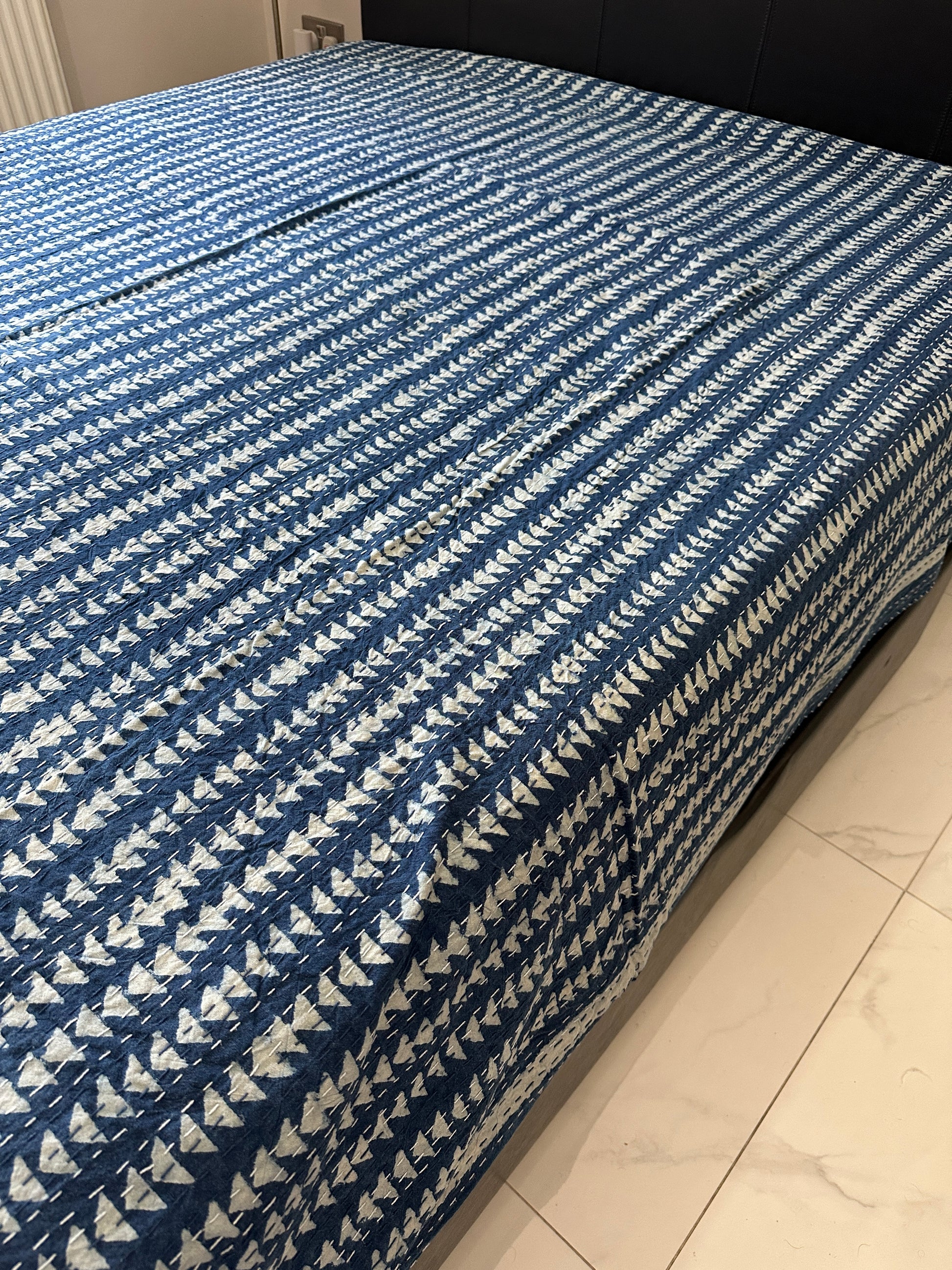 Indigo Triangle Mosaic Kantha Bedspread