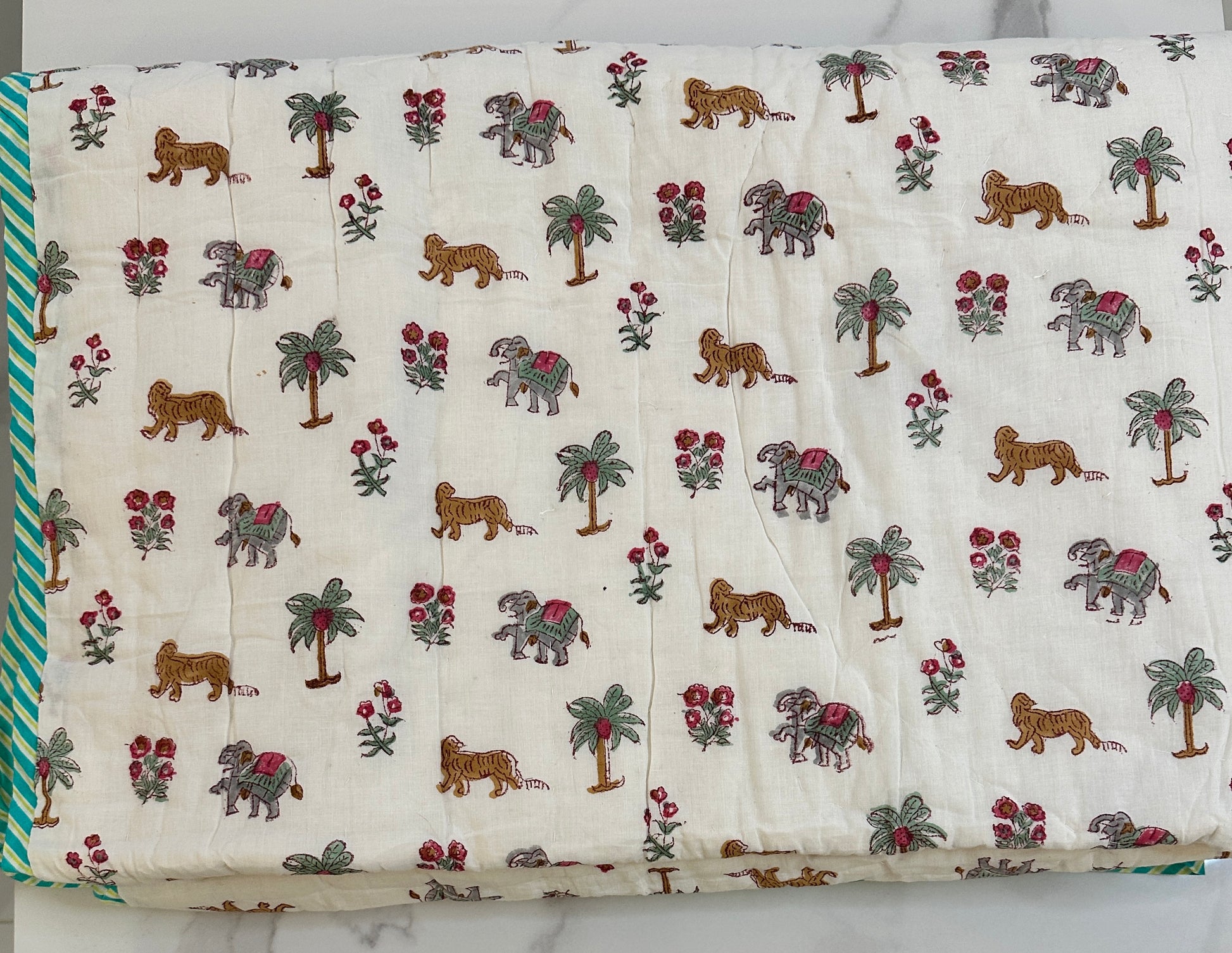 Jungle - Hand Block Printed Reversible Kids Quilt