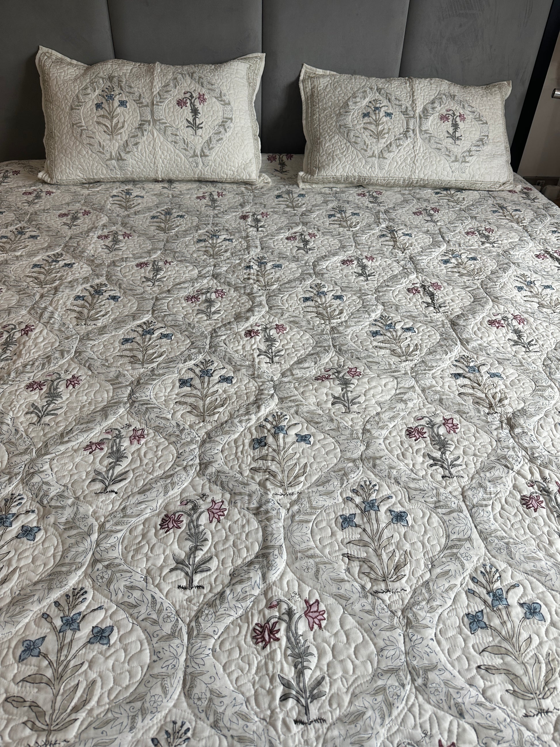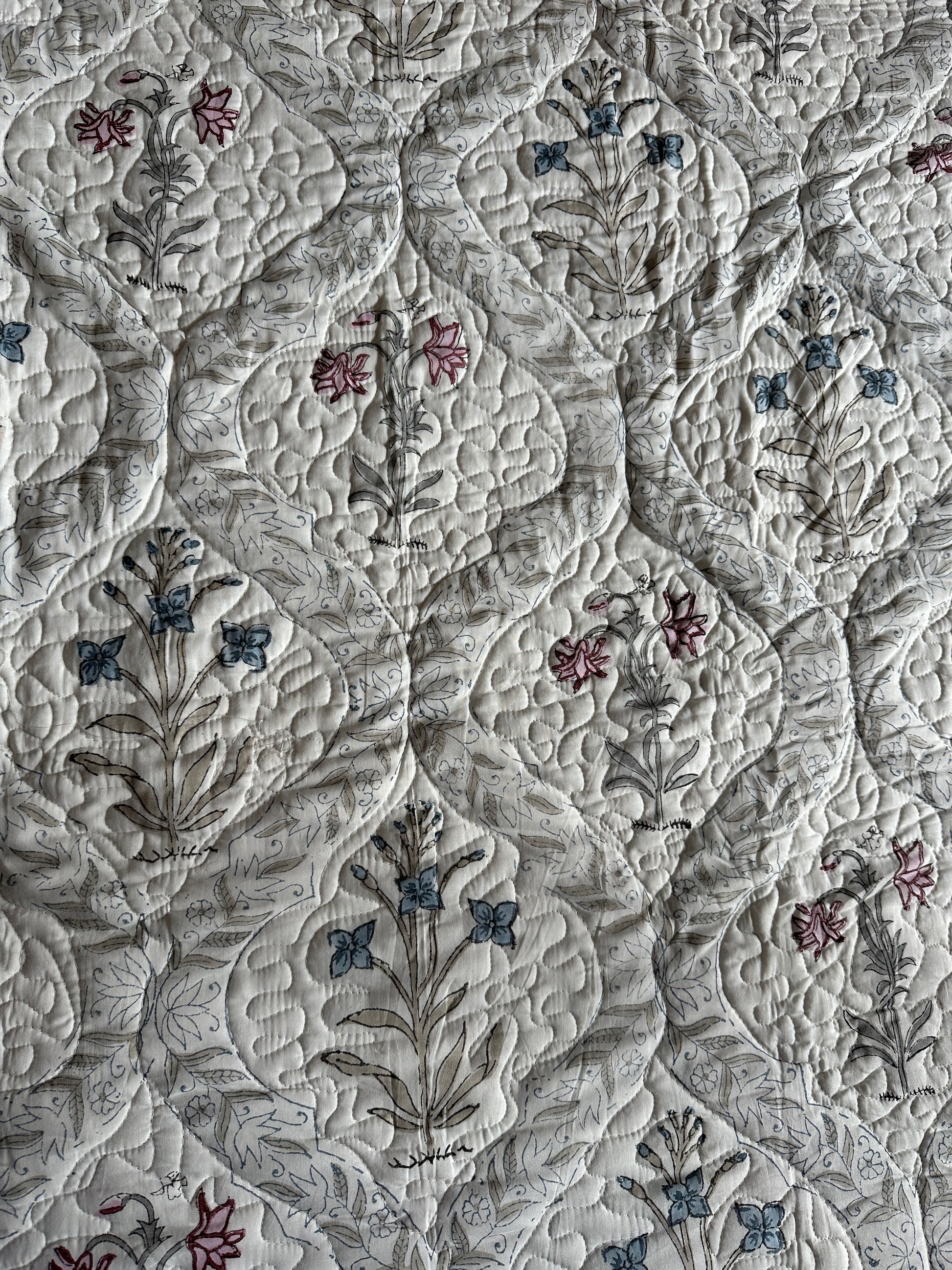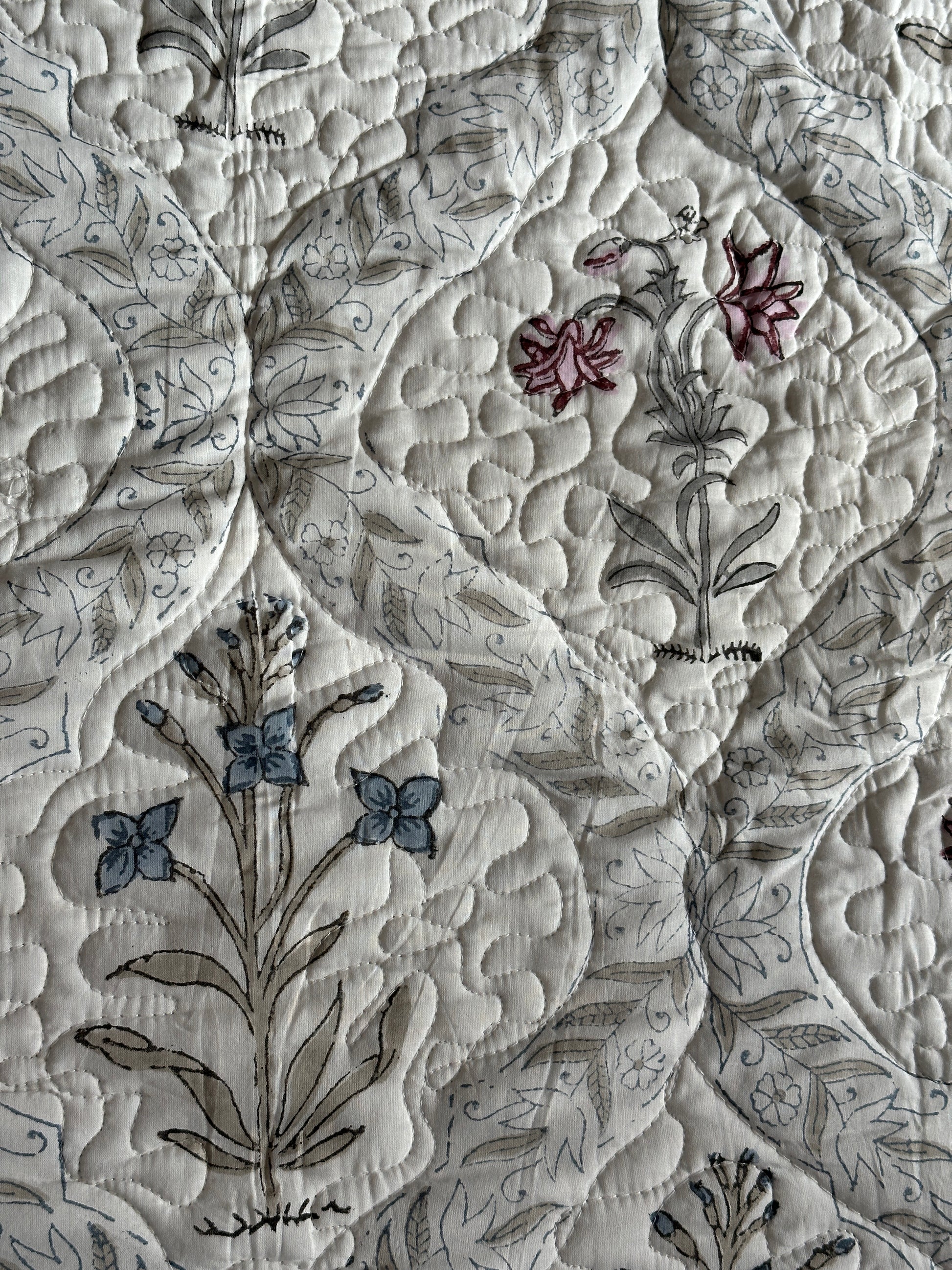 Beautiful, luxury hand block printed, soft touch quilted bedcover/ quilt.