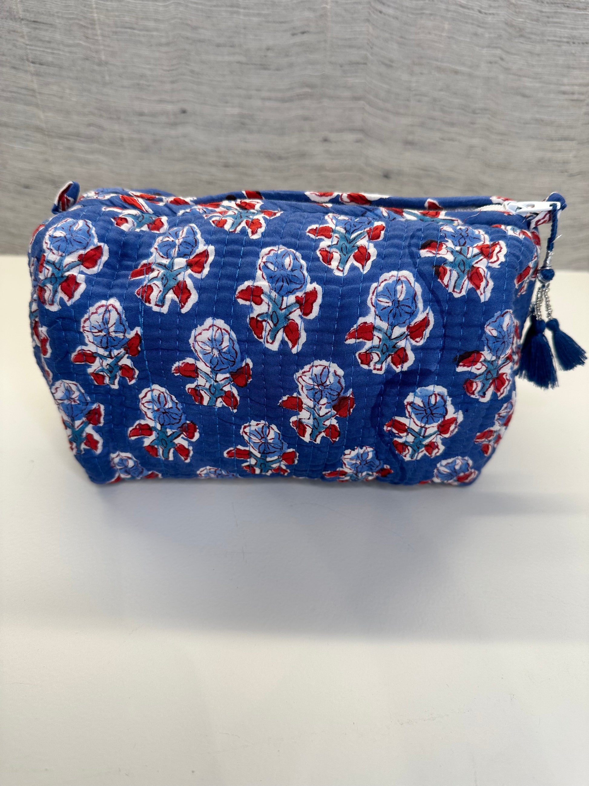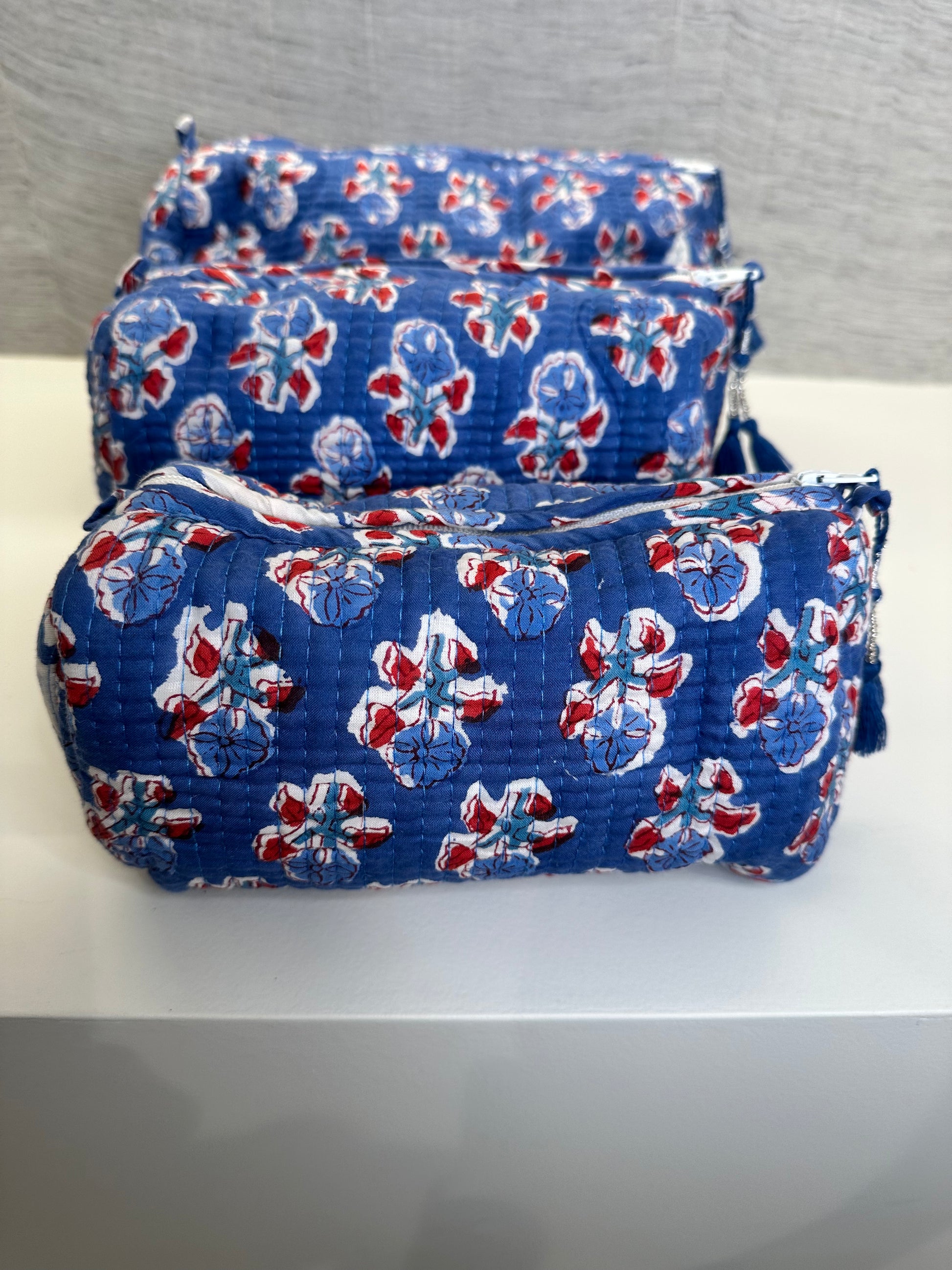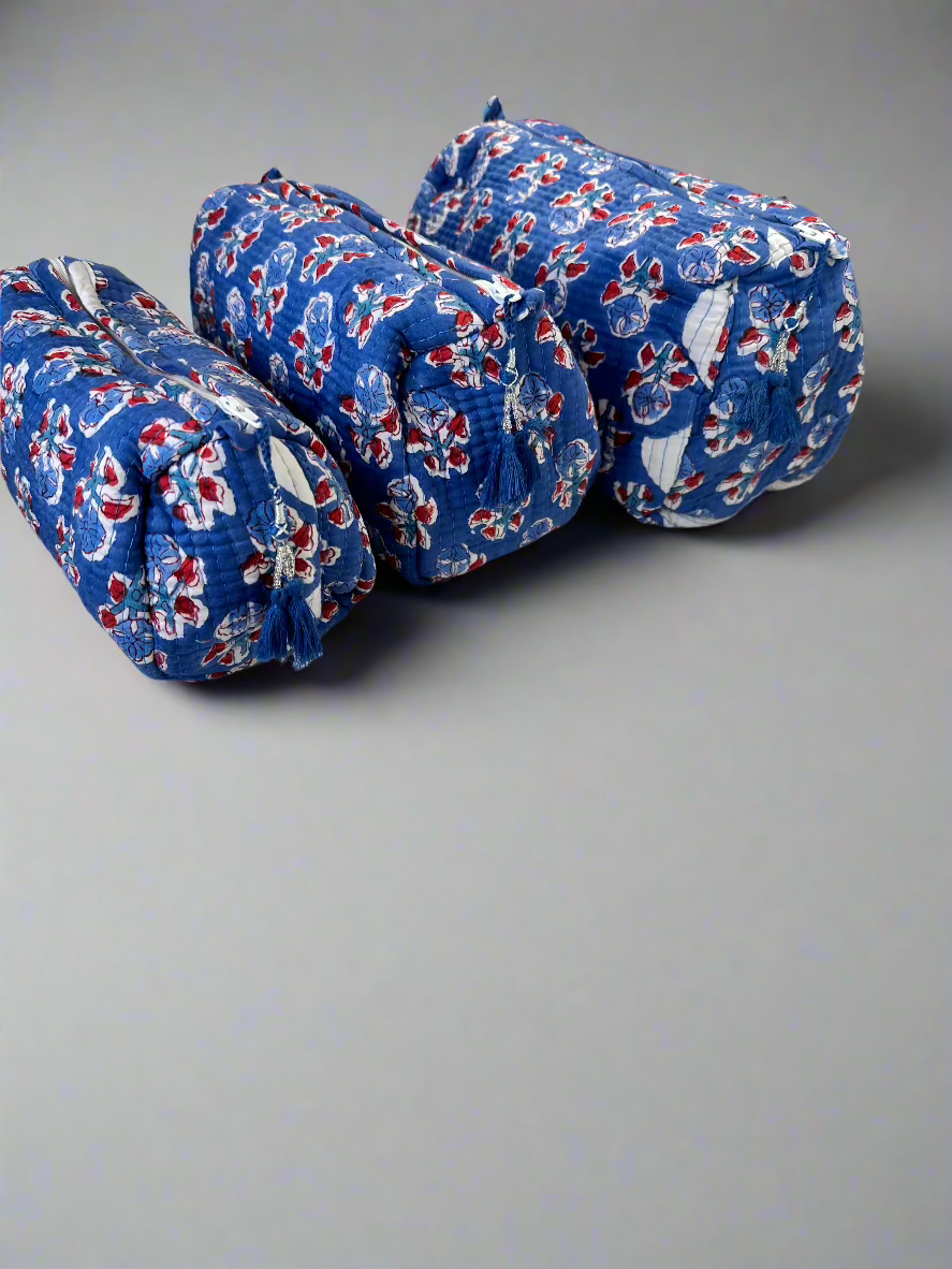 Bright hand-block printed pouches come as a vibrant collection of three with a unique and beautiful floral print to add a touch of charm to your everyday storage needs.