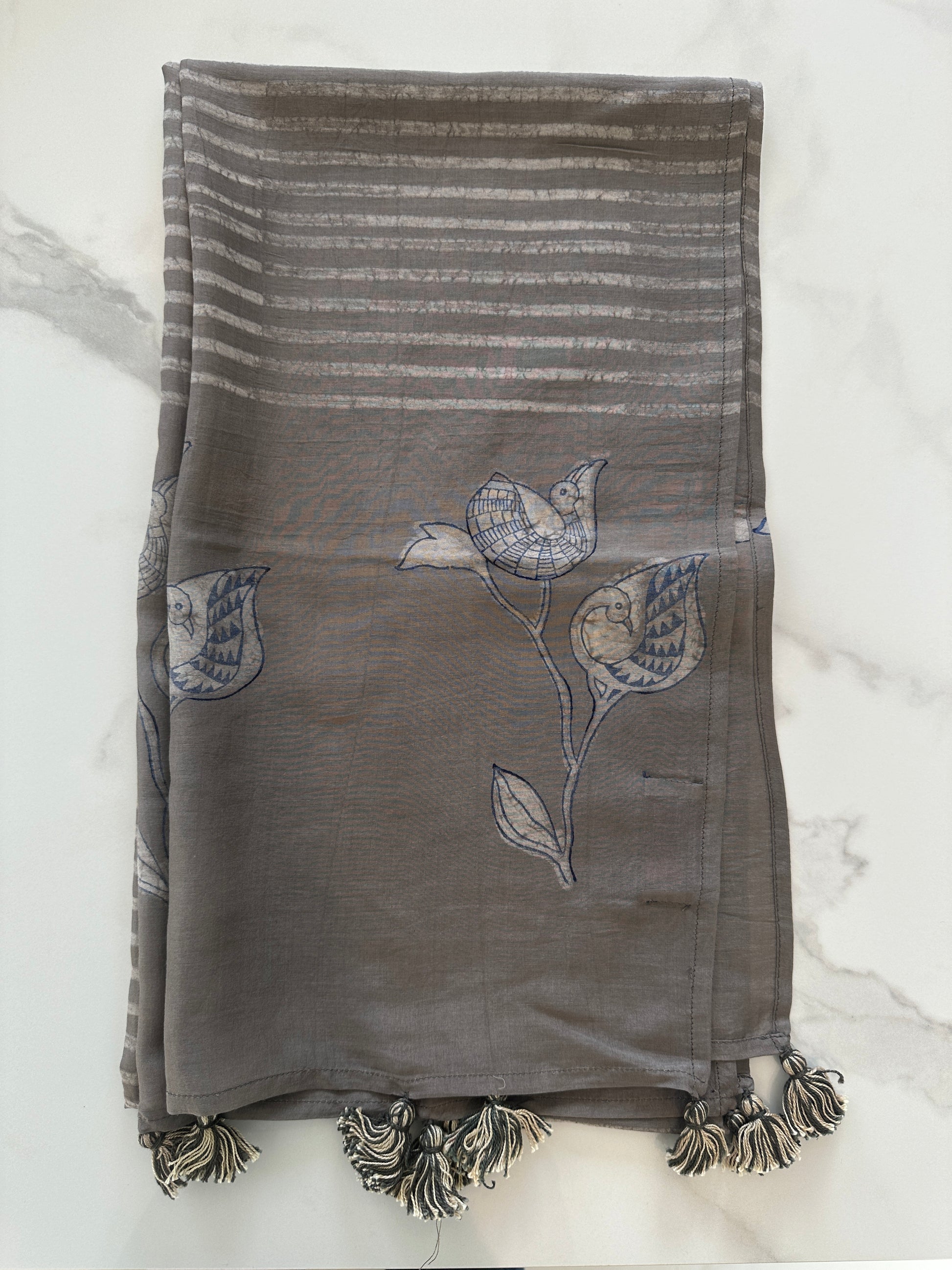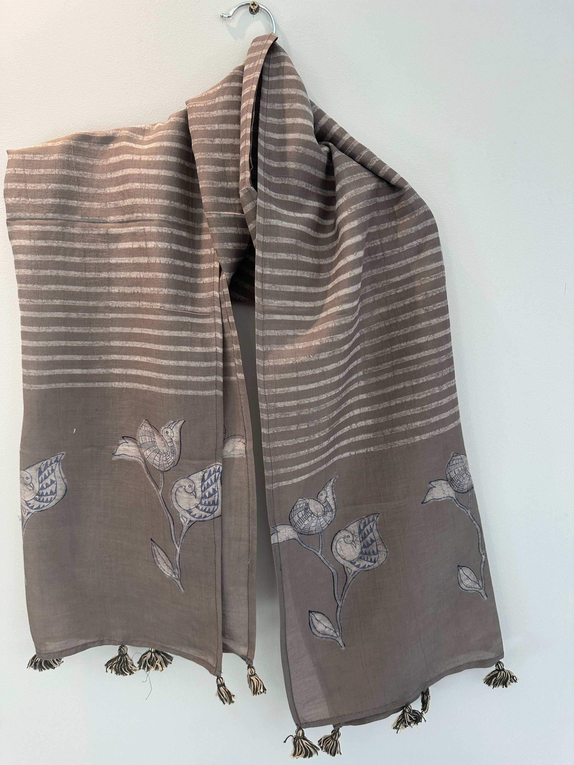 Kashish - Dabu Hand Block Printed Cotton Silk Stole