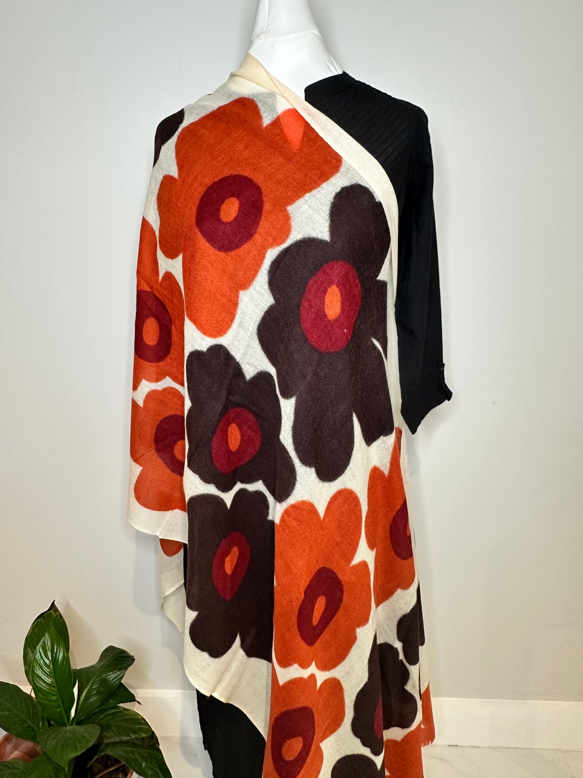 Hand Painted Pashmina Wool Stoles - Bold vibrant Floral motifs in rich autumn hues.