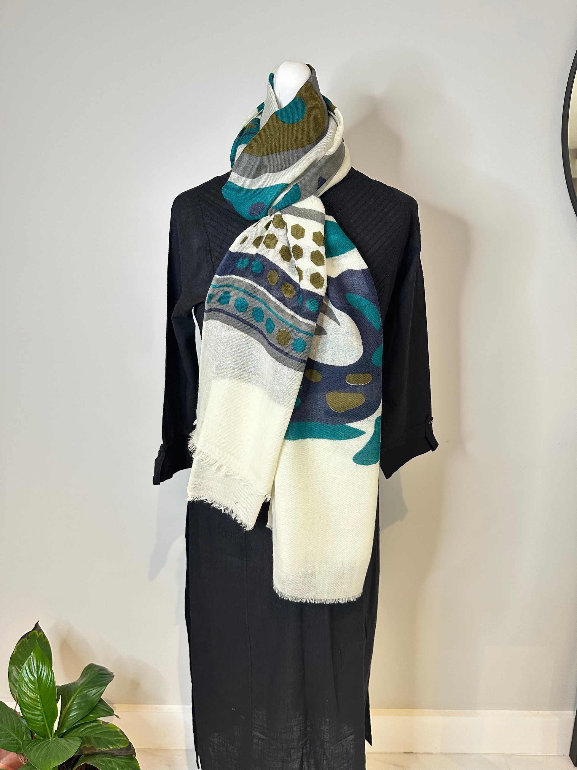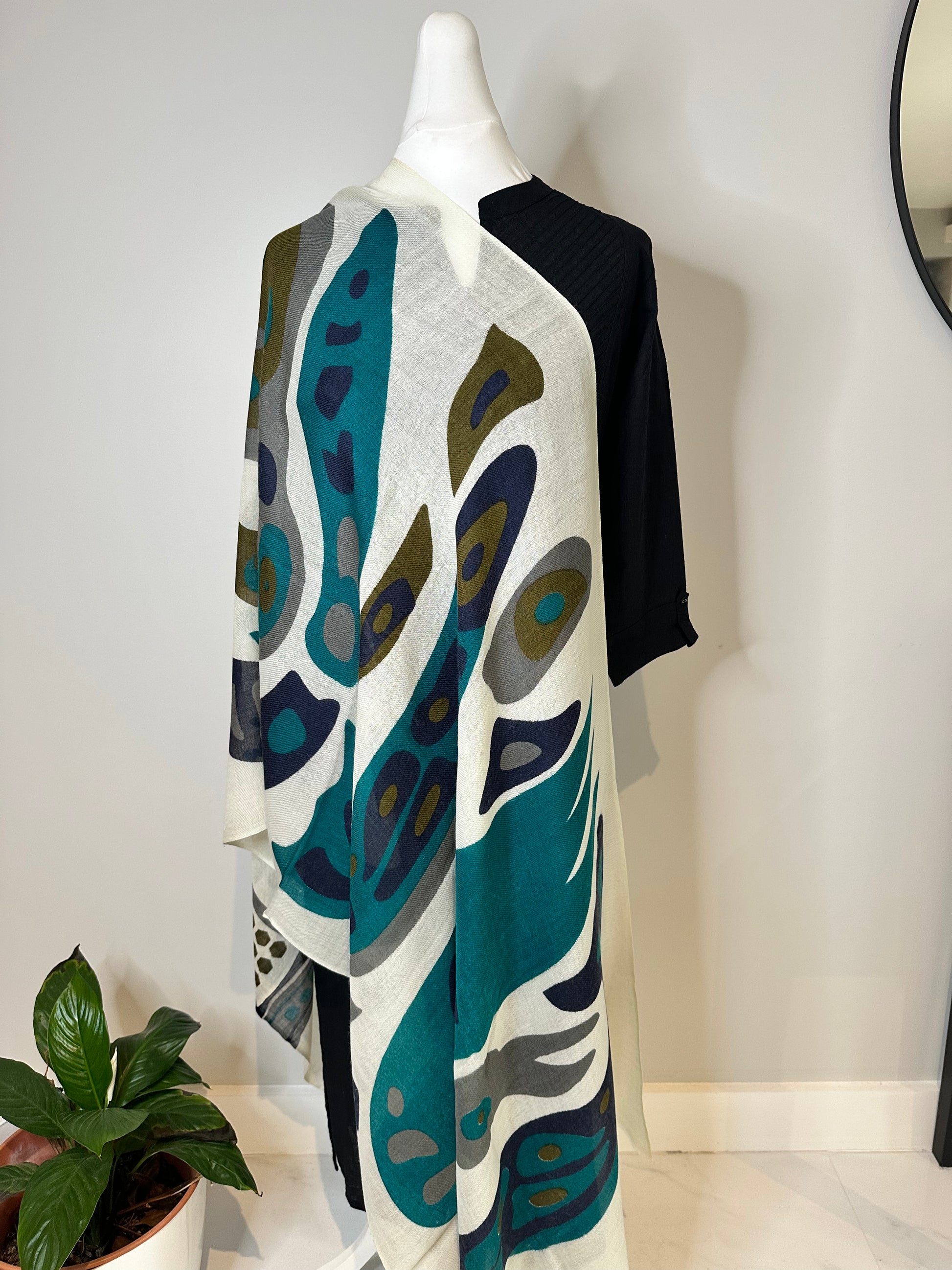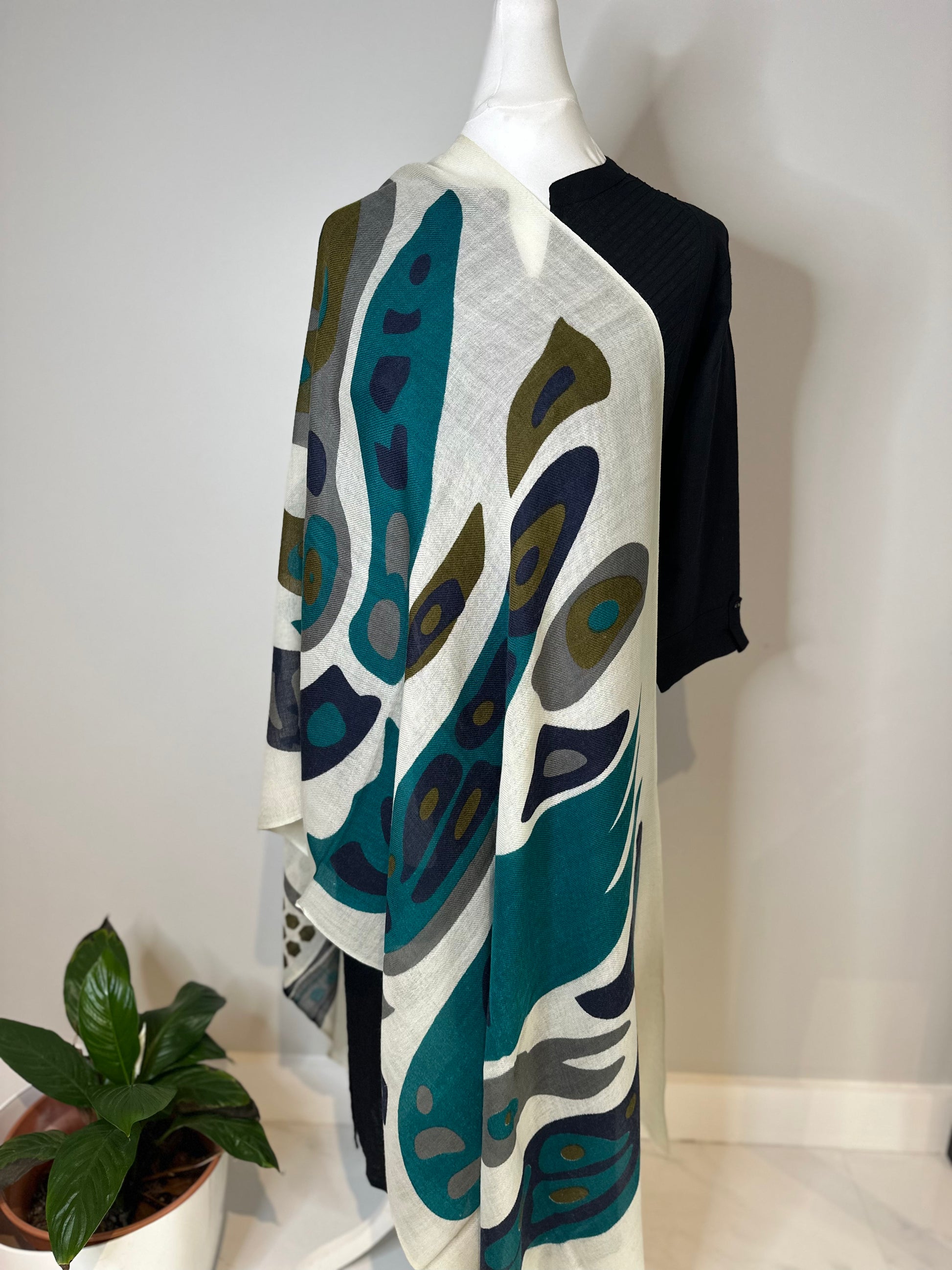 Hand Painted Pashmina Wool Stoles - Inspired by intricate patterns and hues of peacock feathers