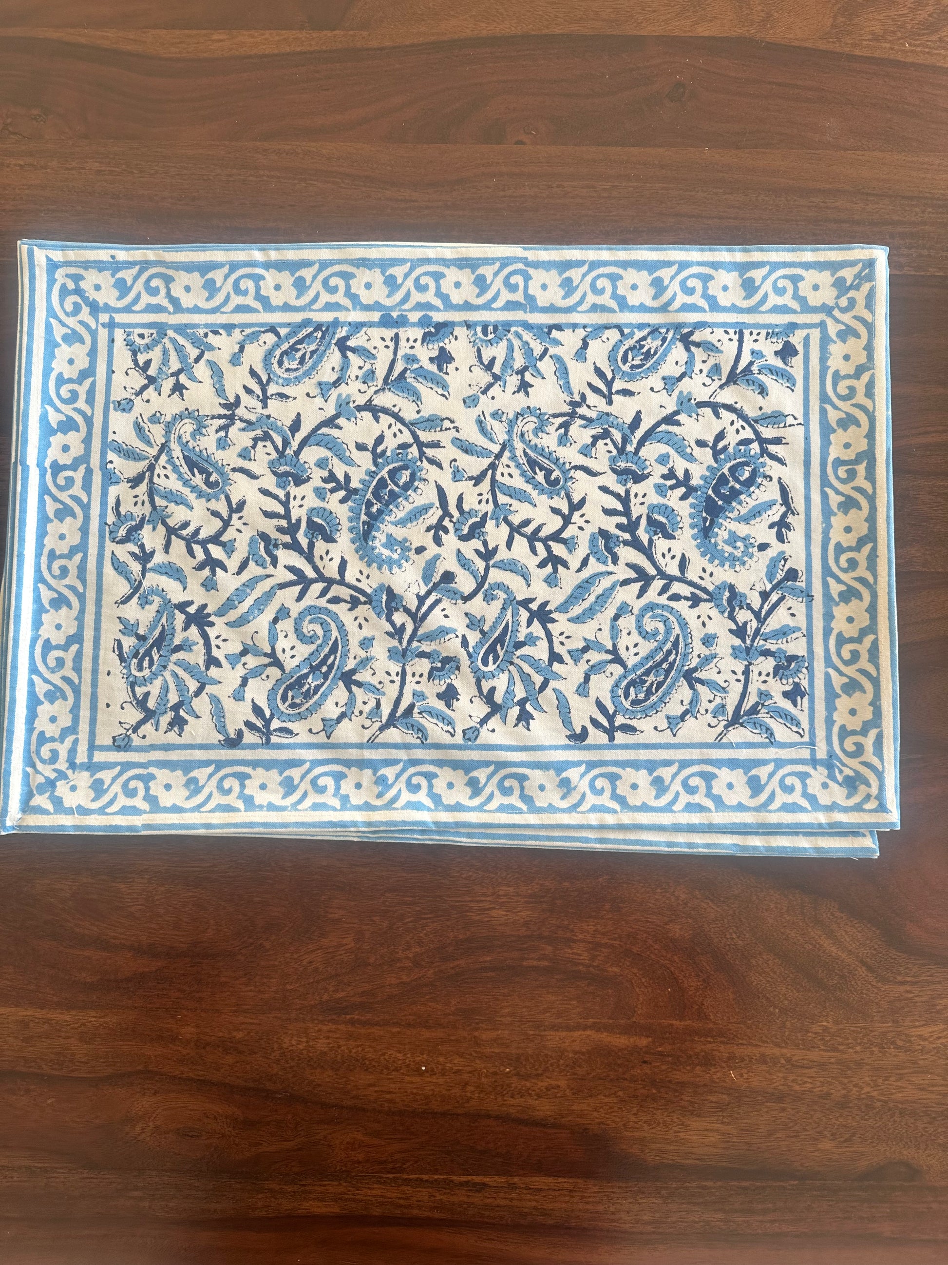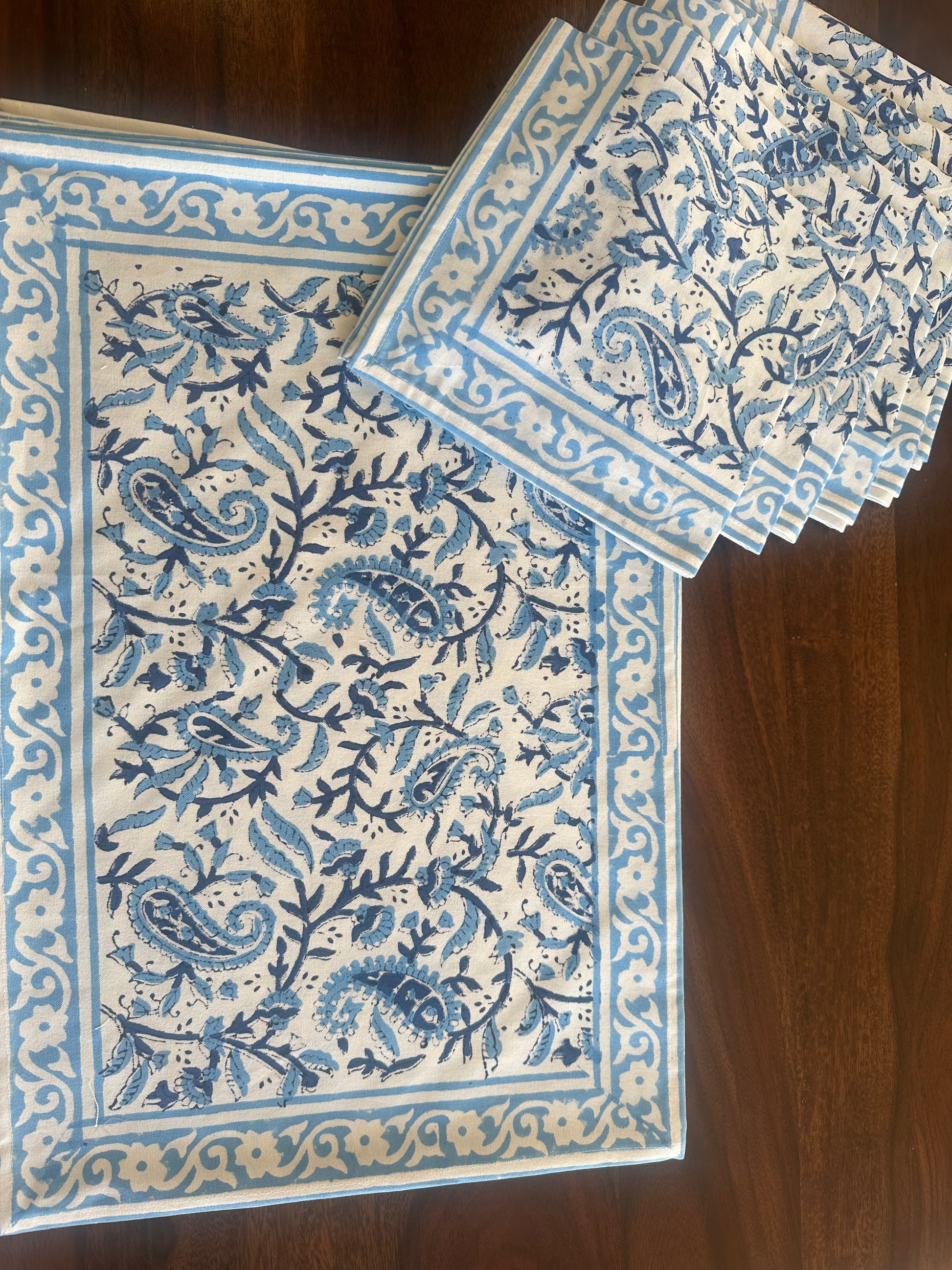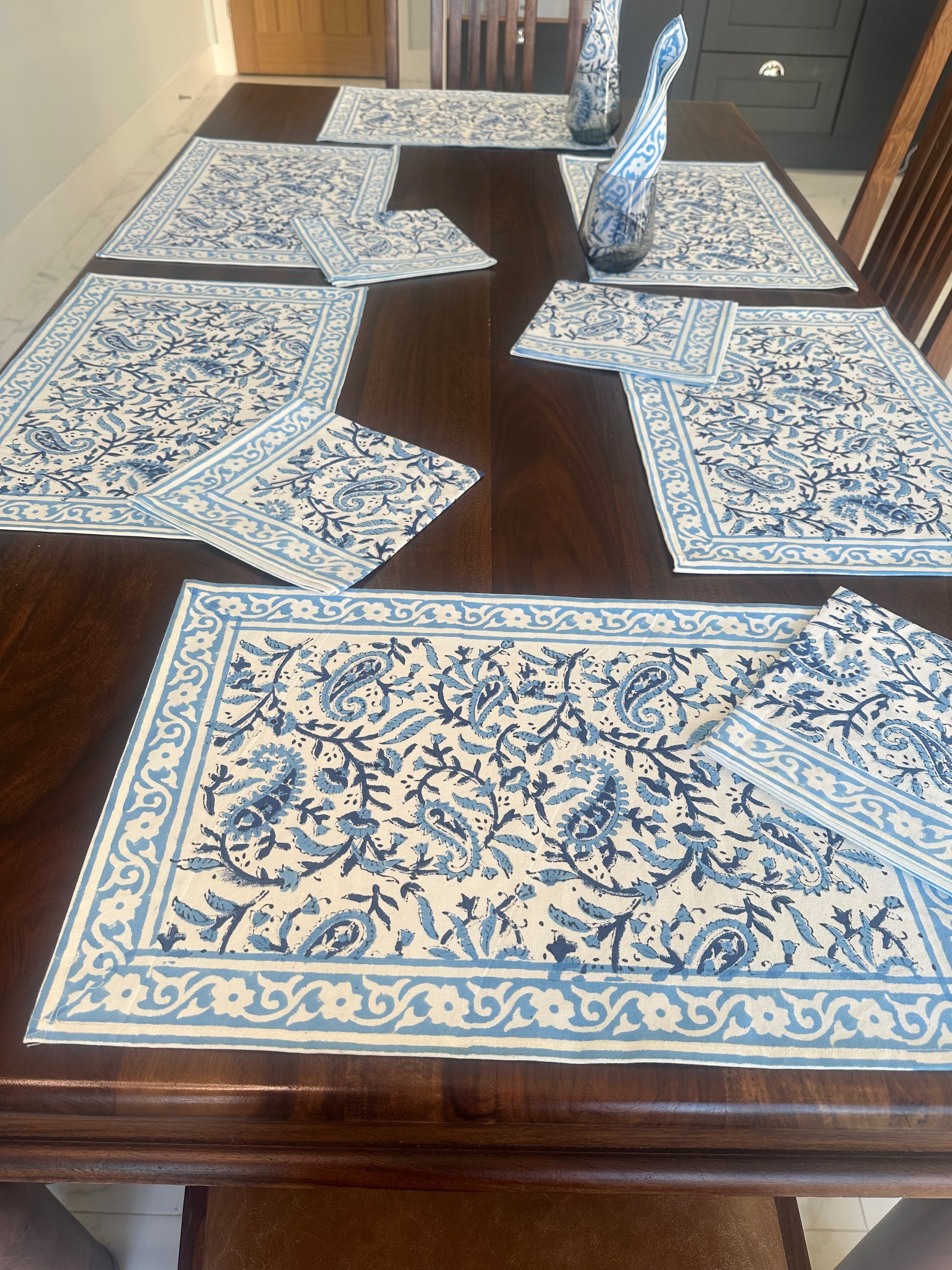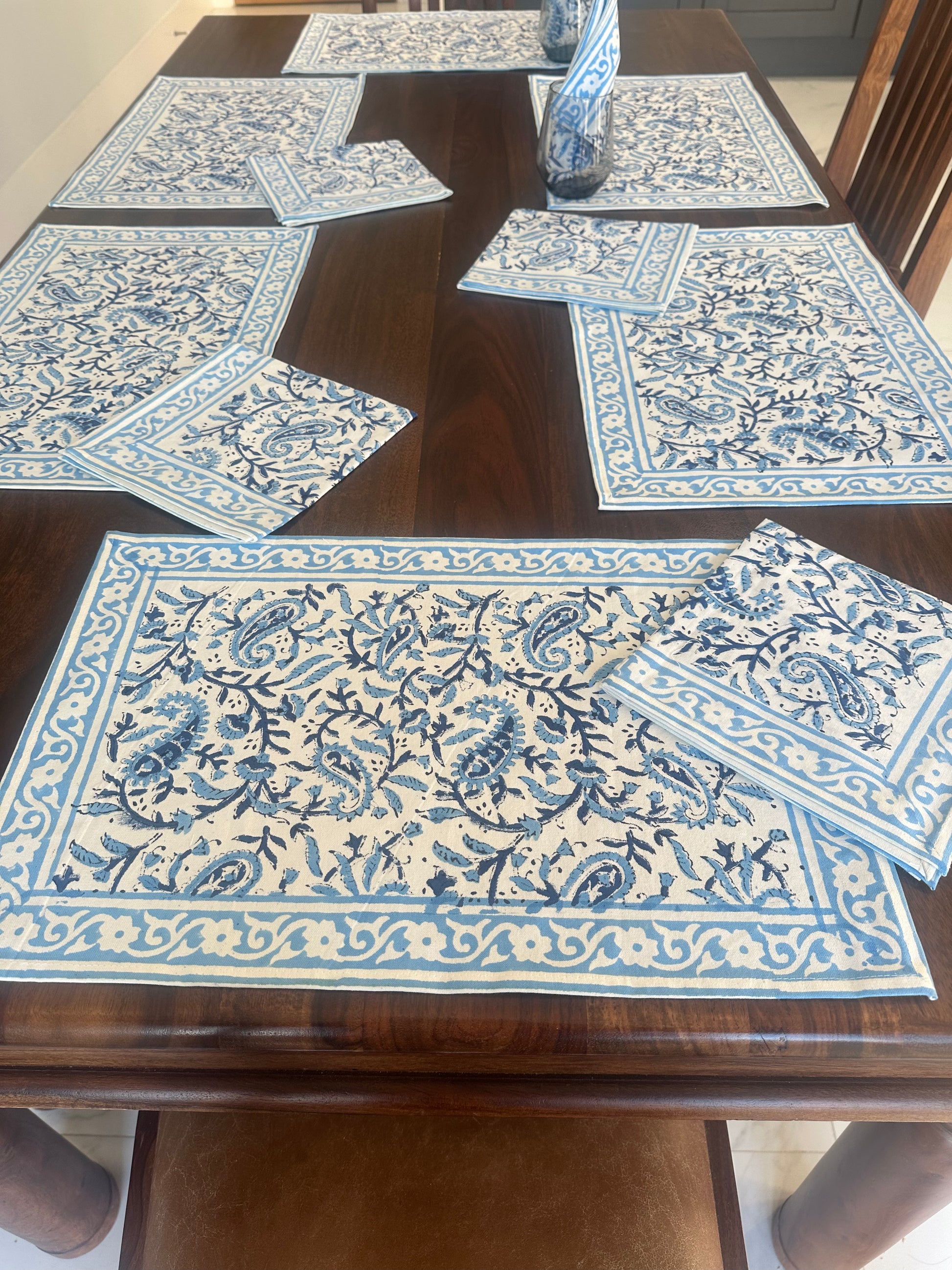 Blue PaisleyTable Mats & Napkins Set - Hand Block Printed
