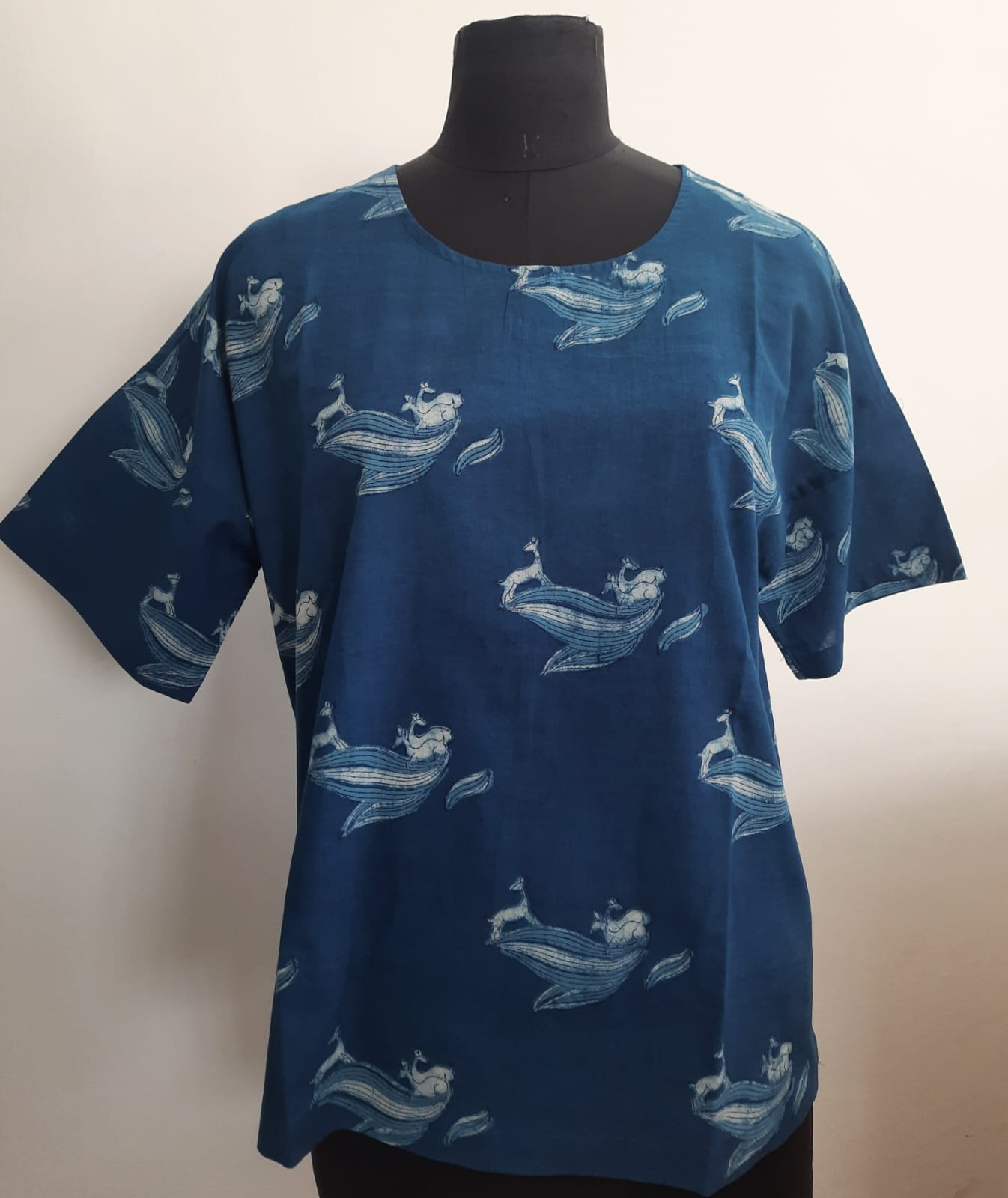 - Indigo dyed Dabu hand block printed top